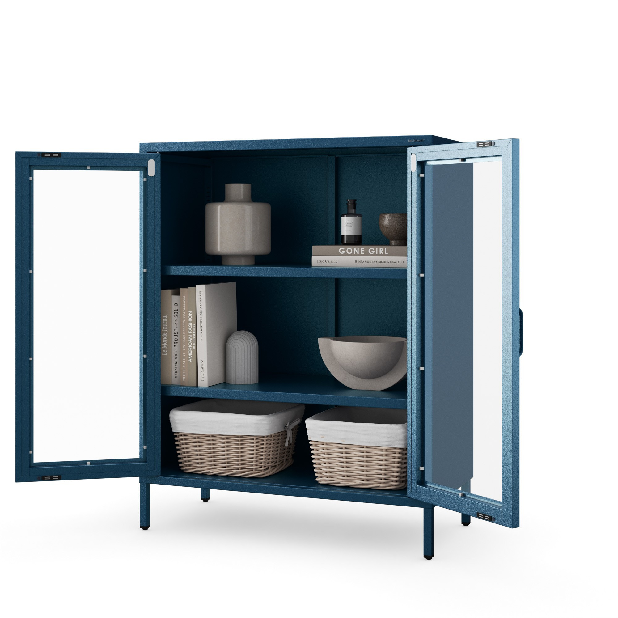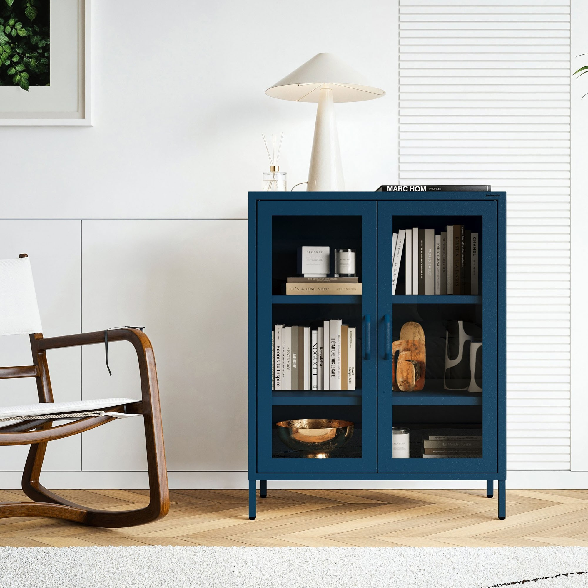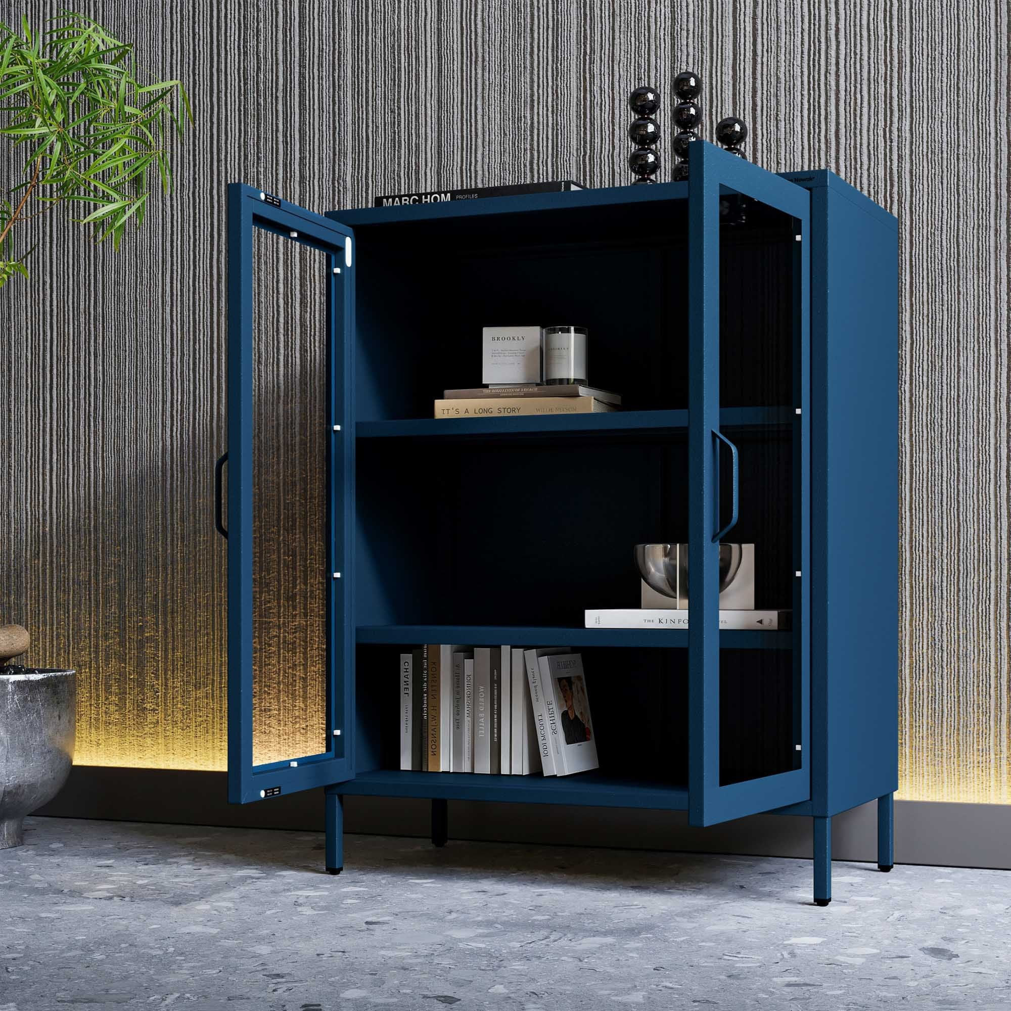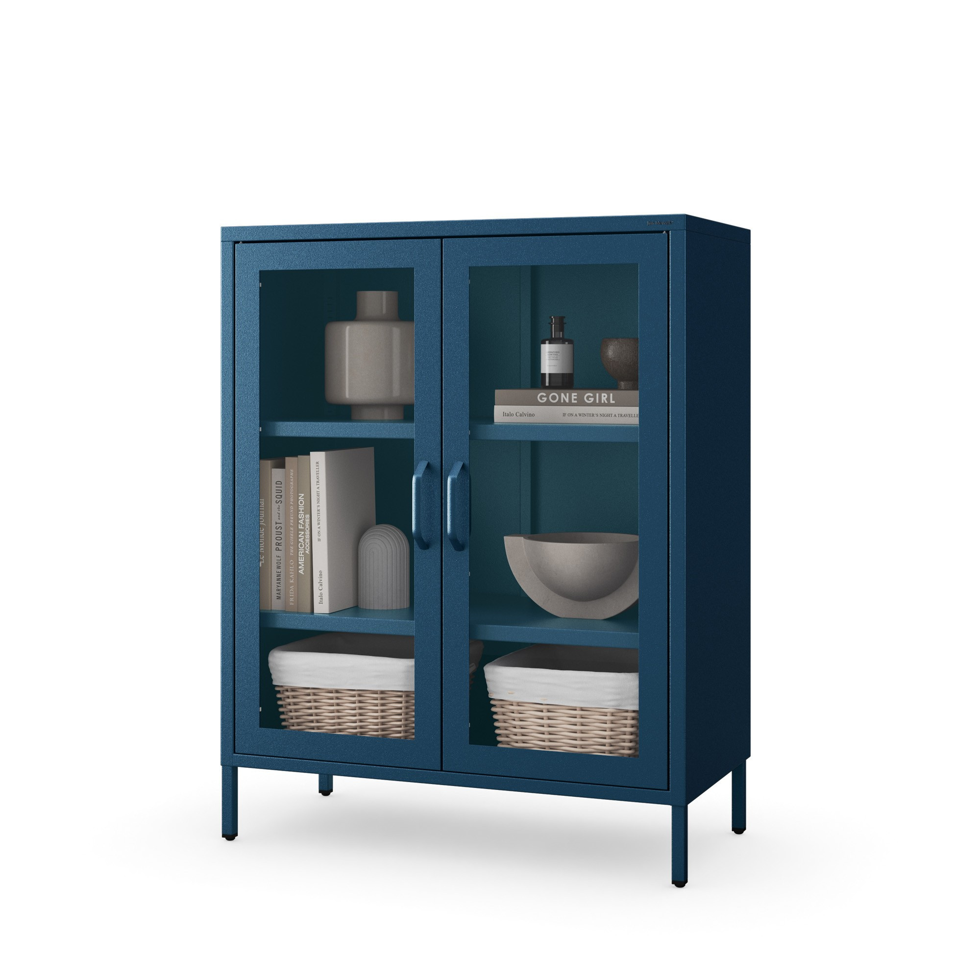 Üvegezett alacsony vitrin sötétkék: Modern GINA, 800 x 1015 x 400 mm
