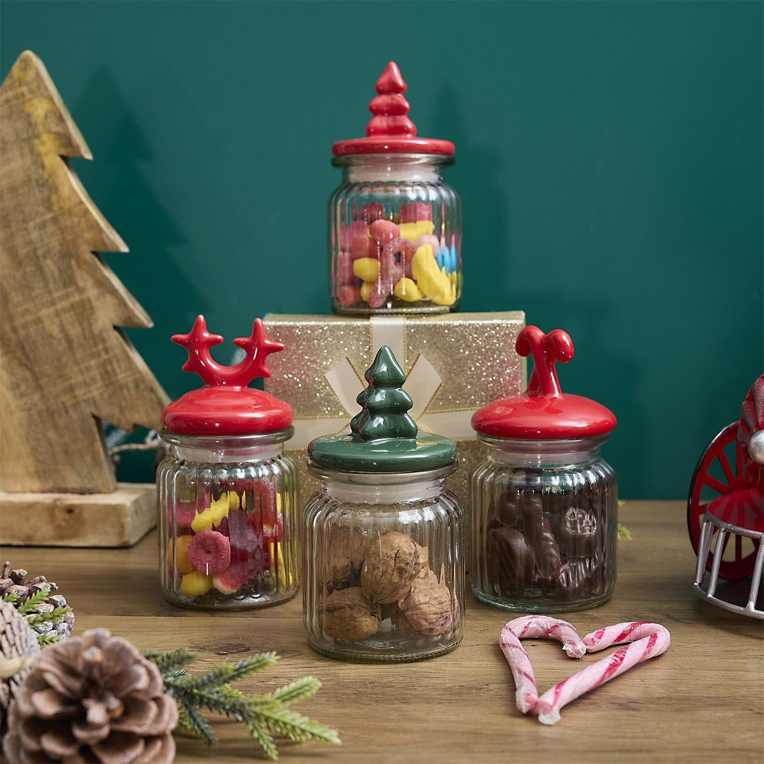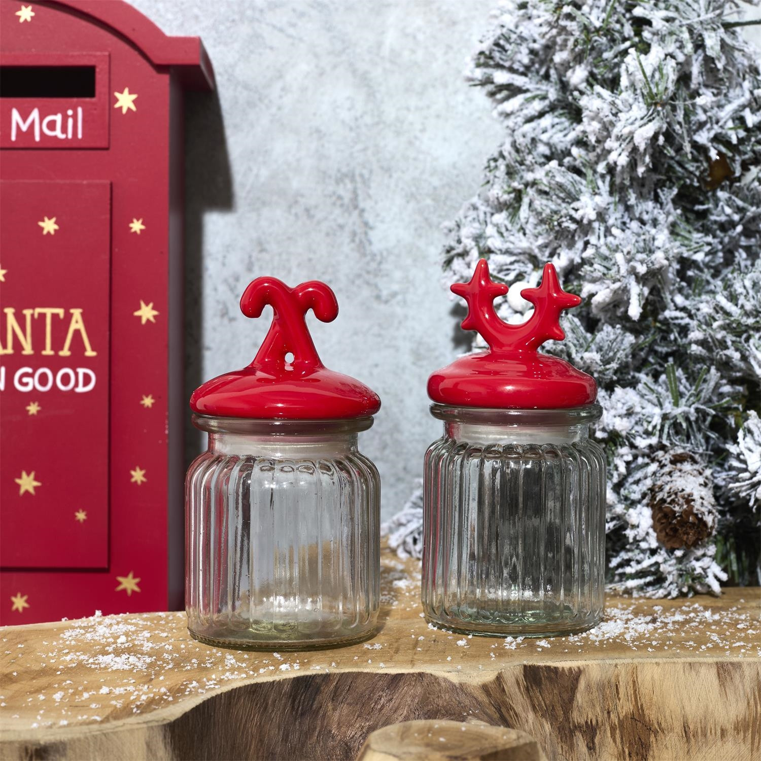 Az üvegedény cukorpálca alakú fedéllel ideális kiegészítő, amely díszíti otthonunkat karácsony idején. Az üvegek jól beválnak cukor, kávé vagy dió tárolására. Üvegből készült pohár, míg a fedél kerámiából készült. Az üveg szilikon tömítéssel van ellátva. Térfogat 125 ml