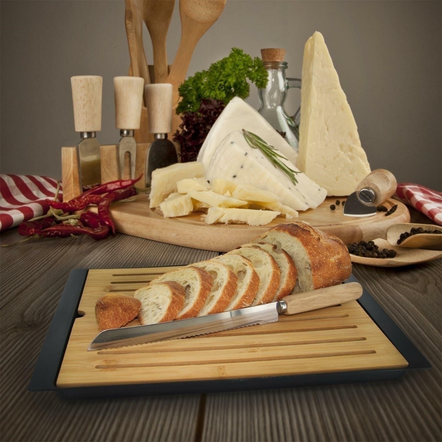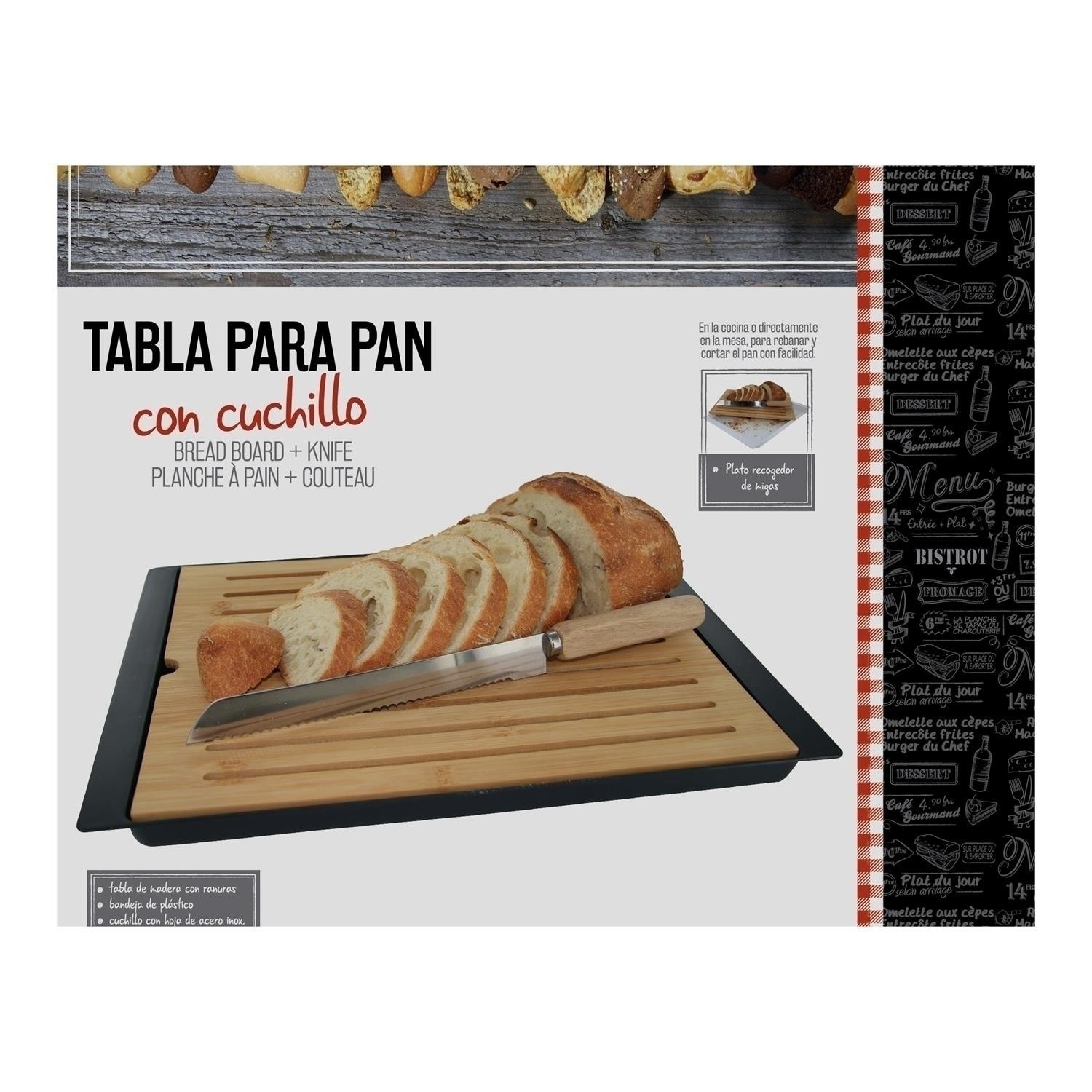 Ez a fa kenyérvágó deszka ötvözi a praktikusságot a funkcionalitással, és számos előnyt kínál. Kifejezetten kenyérvágásra tervezték, így ideális eszköz a friss péksütemények pontos és kényelmes szeleteléséhez. Egyedi morzsa szűrőrendszere hatékonyan gyűjti és tárolja azokat egy speciális tartályban, ami megkönnyíti a konyhapult tisztán tartását és minimalizálja a rendetlenséget. A termék hossza (cm): 38 A termék magassága (cm): 1,9 A termék mélysége (cm): 27 A termék súlya (g): 598 Anyag: Bambusz, rozsdamentes acél