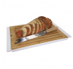 Ez a fa kenyérvágó deszka ötvözi a praktikusságot a funkcionalitással, és számos előnyt kínál. Kifejezetten kenyérvágásra tervezték, így ideális eszköz a friss péksütemények pontos és kényelmes szeleteléséhez. Egyedi morzsa szűrőrendszere hatékonyan gyűjti és tárolja azokat egy speciális tartályban, ami megkönnyíti a konyhapult tisztán tartását és minimalizálja a rendetlenséget. A termék hossza (cm): 38 A termék magassága (cm): 1,9 A termék mélysége (cm): 27 A termék súlya (g): 598 Anyag: Bambusz, rozsdamentes acél