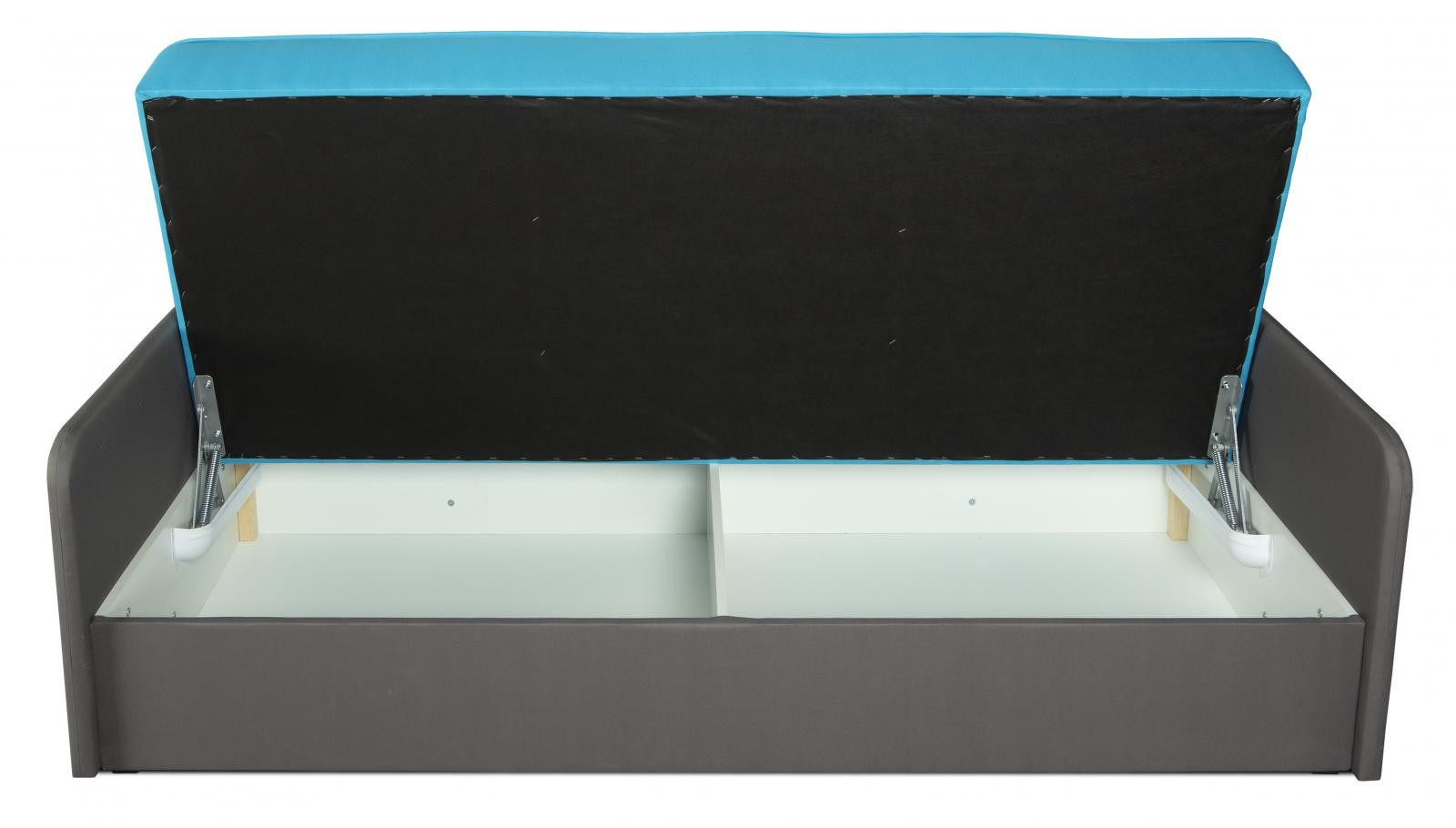 Válenda v moderním designu Oliva je vybavena čelem a praktickým úložným prostorem, který je přístupný zepředu. Výplň ložné plochy tvoří kombinace pružin bonell s PUR pěnou. Vybírat můžete z několika trendy odstínů. Válenda bude dodaná v odstínu, který je vyobrazený v úvodní fotografii.