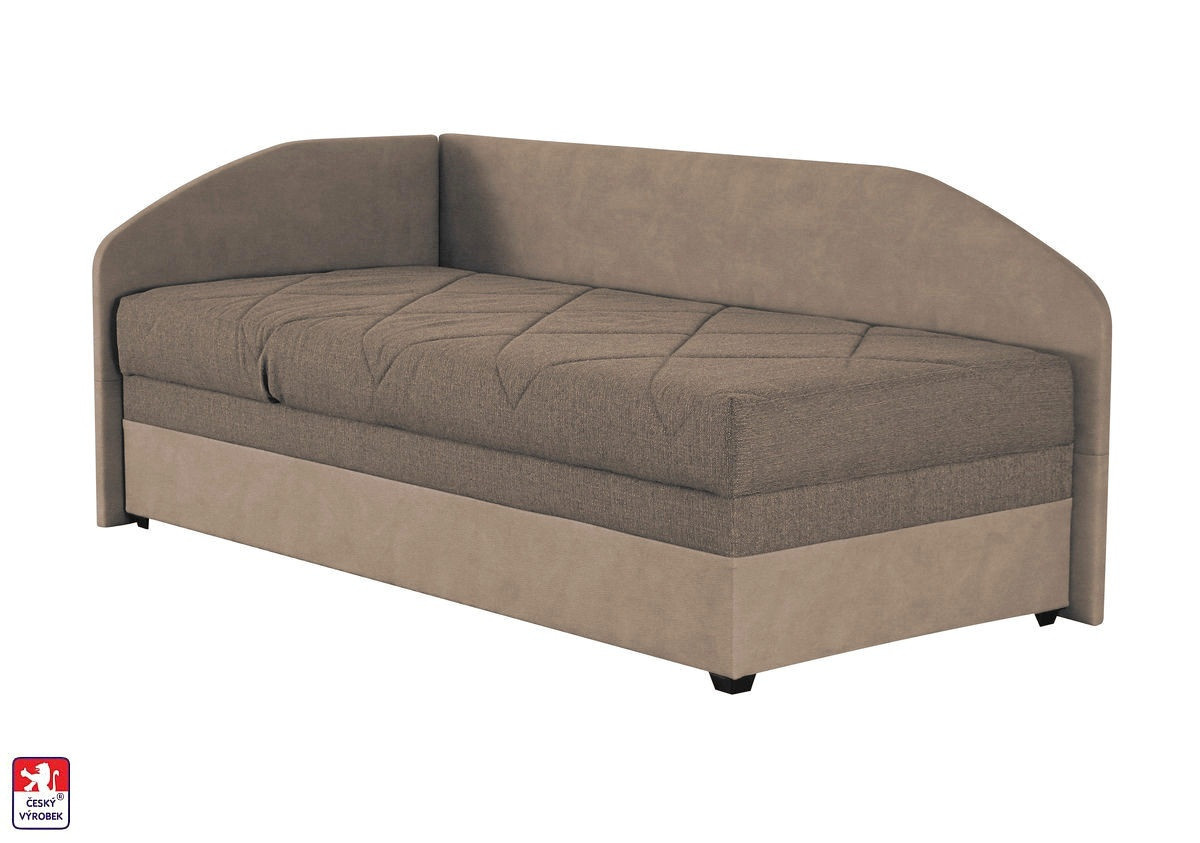 Torino je polohovací válenda s elastickou PUR matrací, která je uložena na lamelovém roštu. Plocha pro spaní je 90x200 cm s komfortní výškou lehací plochy 53 cm. Speciálně strukturovaný povrch jádra matrace zajišťuje dobré přizpůsobení se tělu a optimální proudění vzduchu. To je důležité pro dosažení správného spánkového klimatu. Rošt je vybavený polohováním pro hlavu (5 poloh) i nohy (1 poloha). Samozřejmostí je i velký úložný prostor na lůžkoviny, který je přístupný od nohou. Válenda nemá zadní část čalouněnou potahovou látkou, je určena k umístění do rohu ke stěně. Zobrazení barev na fotografii se může od skutečnosti lišit.