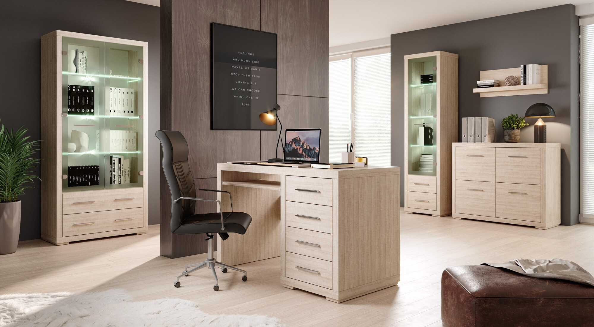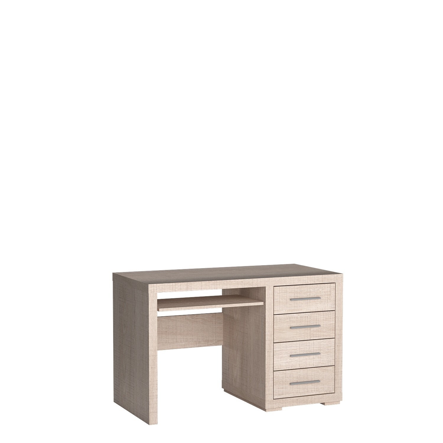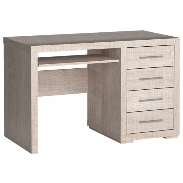 Négy fiókja van, amelyek sok dokumentumot, eszközt vagy könyvet képesek befogadni. A kihúzható polc ideális a billentyűzet vagy a legszükségesebb dolgok tárolására. A fém fogantyúk kiemelik a bútor szilárdságát és jellegét. Az asztal megkönnyíti a szervezést, alkalmas irodába, dolgozószobába, de a nappaliba vagy hálószobába is. Sokféle elrendezést készíthet vele, használható akár fésülködőasztalként is.
