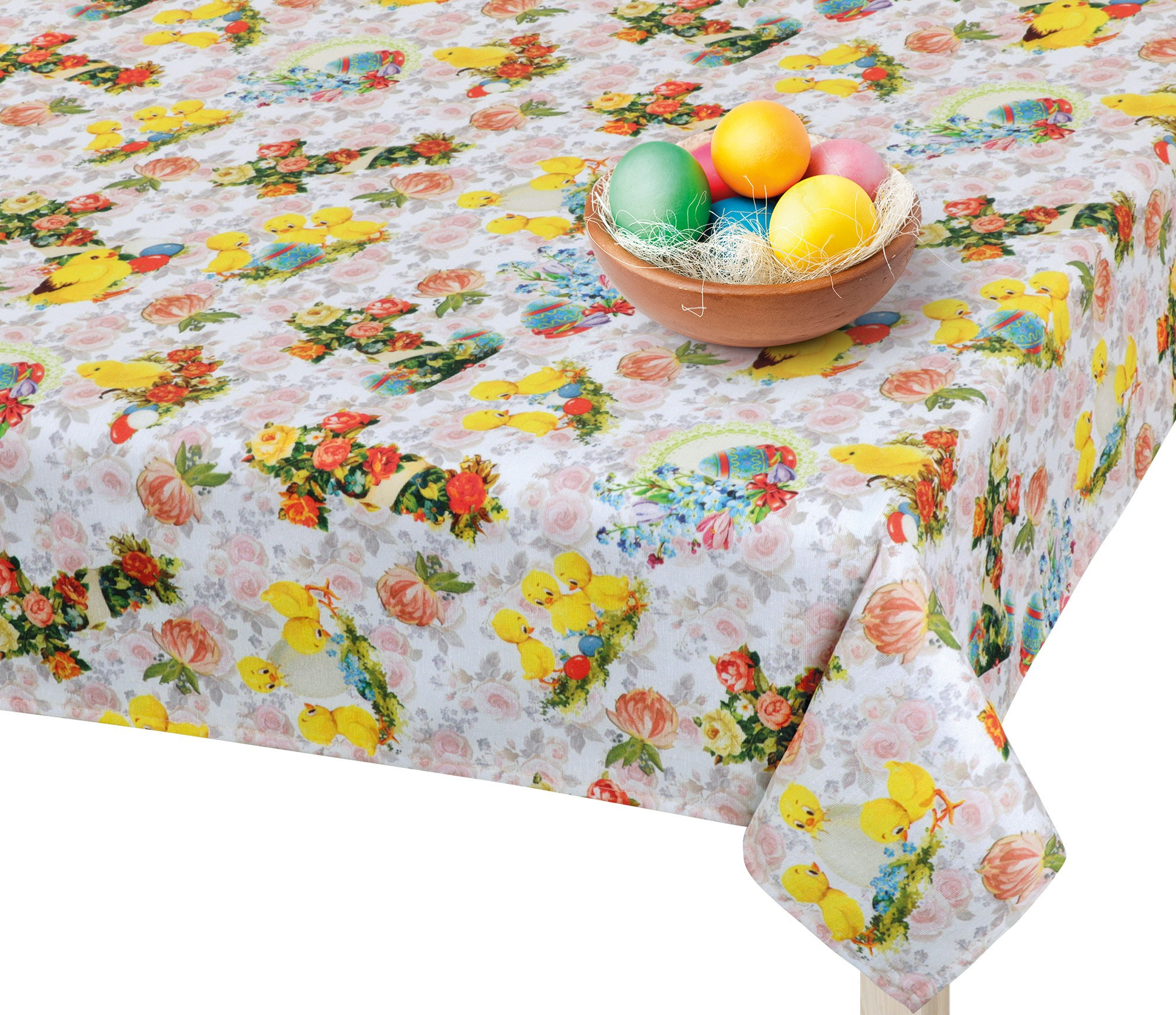 Tento ubrus s velikonočním motivem je ušit z kvalitního materiálu, který se odolný vůči poškození. Na Vašem stole bude skvěle vynikat a stane se oblíbeným doplňkem jarních svátků nejen ve Vaší kuchyni. Ve stejném designu je možné objednat i kuchyňskou chňapku nebo povláček na polštářek.
