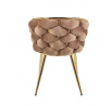 Méretek: - ülés szélessége: 47 cm - teljes szélesség: 57 cm - ülés magassága: 49 cm - teljes magasság: 78 cm - ülés mélysége: 42 cm Anyag: - kárpitozás: bársony - szerkezet: króm Szín: - ülés: cappuccino - szerkezet: arany