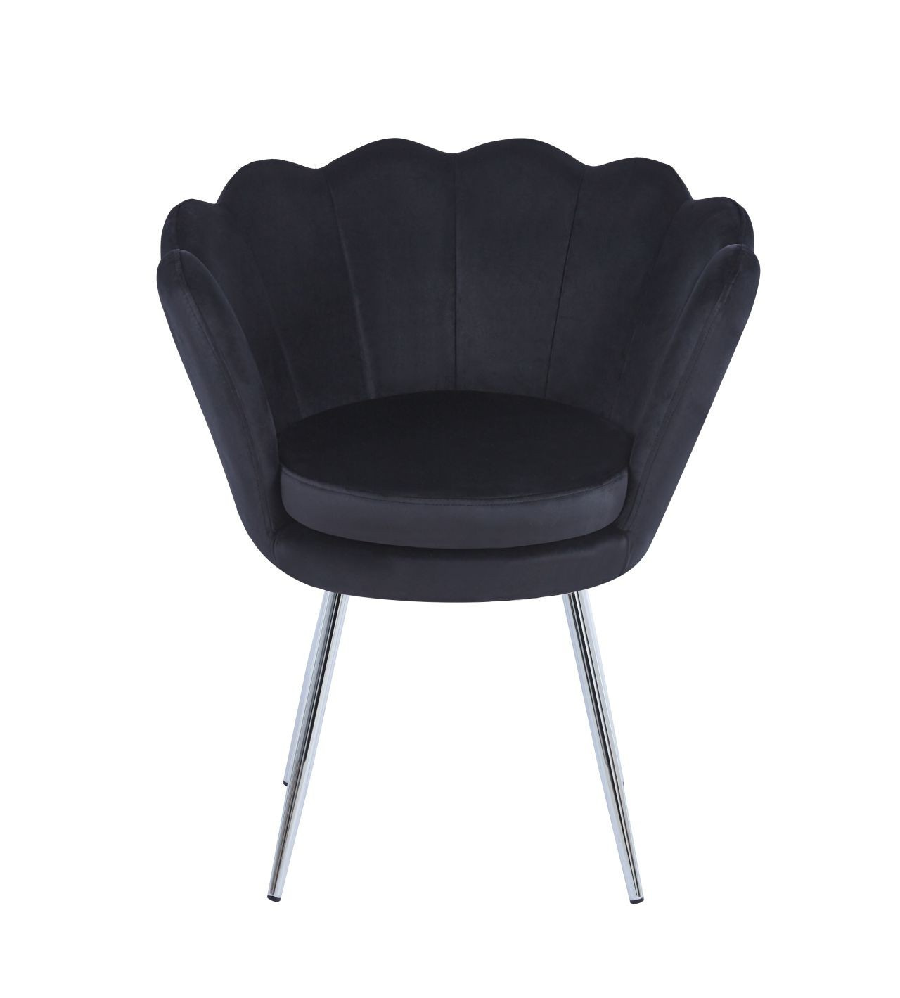 Méretek: - teljes magasság: 77,50 cm - ülésmagasság: 39,50 cm - háttámla magassága: 37 cm - ülésmélység: 42 cm - ülés szélessége: 38 cm - teljes szélesség: 68 cm Anyag: - kárpit: bársony - lábak: króm Szín: - ülés: fekete - lábak: ezüst