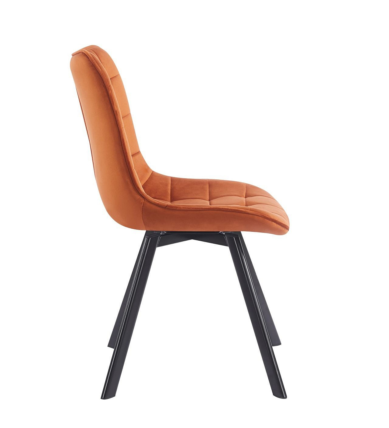 A szék ülőkéje 180 fokban forgatható, visszatérési funkcióval az alaphelyzetbe.Méretek: - ülés szélessége: 50 cm - ülés magassága: 47 cm - teljes magasság: 86 cm - ülés mélysége: 42 cm Anyag - kárpit: bársony - lábak: porszórt festett fém Szín: - ülés: fahéj - lábak: fekete