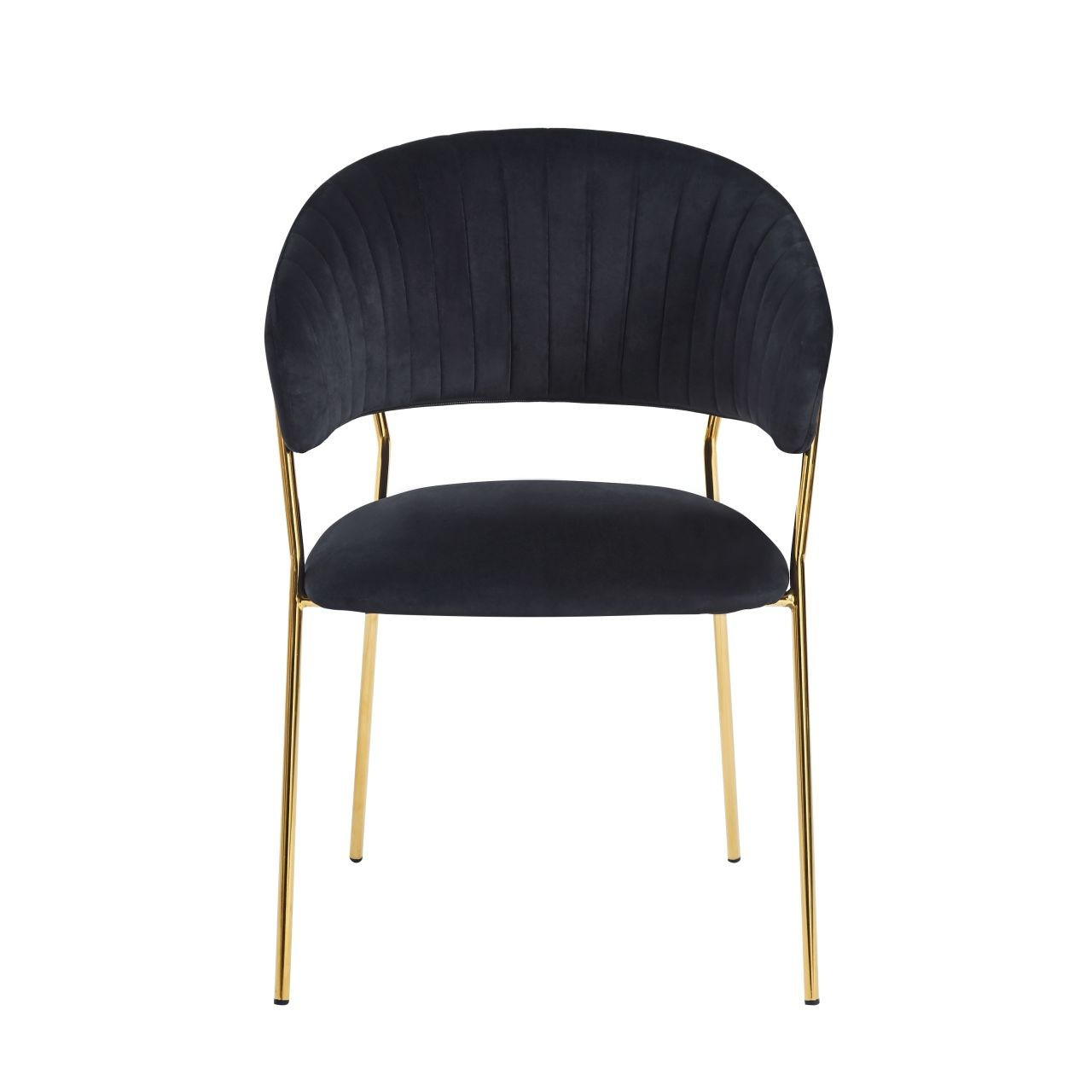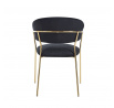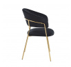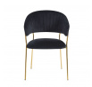 Méretek: - szék magassága: 84,5 cm - ülésmagasság: 47-48 cm - ülés és háttámla közötti rés magassága: 9 cm - ülés szélessége: 50 cm - szék szélessége: 57 cm - ülés mélysége: 48 cm - szék mélysége: 55 cm Anyag: - kárpit: bársony - lábak: króm Szín: - ülés + háttámla: fekete - szerkezet: arany