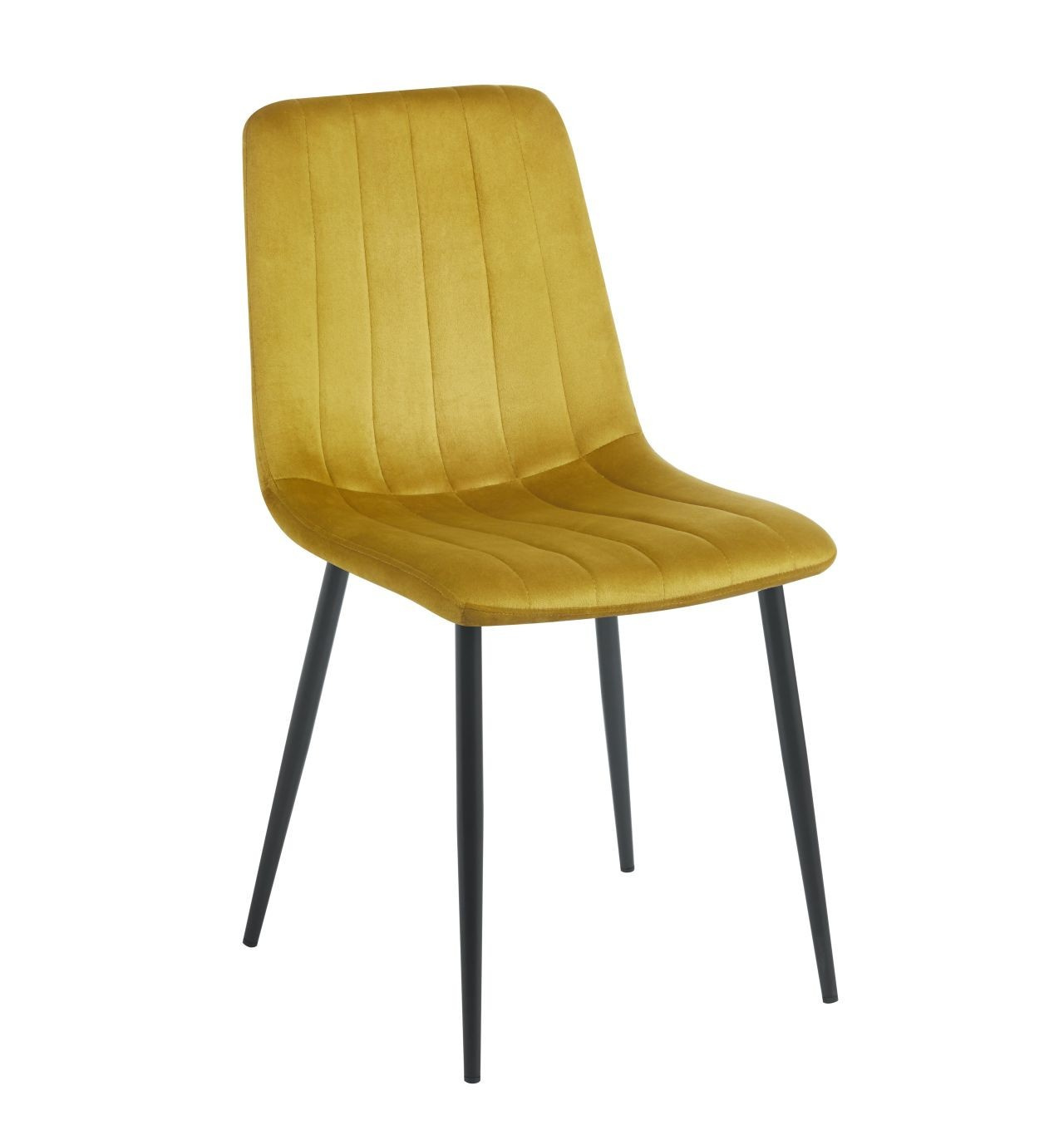 Méretek: - ülés szélessége: 44 cm - ülés magassága: 49 cm - teljes magasság: 87 cm - ülés mélysége: 55 cm Anyag - kárpitozás: bársony - lábak: porszórt festett fém Szín: - ülés: curry - lábak: fekete