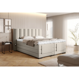 The Veros adjustable electric bed allows you to control the comfort of your rest in order to ensure a comfortable and serene sleep. It has a motorised, adjustable frame that allows the user to easily adjust the footrest and headrest parts. You do not even need to get up from the bed to change its position as the kit includes two remote controls. In the case of a single bed, one remote control is included. The Veros bed consists of as many as 2 main mattresses: bonnell and pocket, and a mattress topper. The main mattresses provide the utmost cosiness and comfort that a continental bed can provide. The mattress topper, in turn, perfectly protects the main mattresses against dirt or damage. The advantages of mattress toppers also include the fact that they provide additional softness and support during sleep, and extend the life of the main mattress. The mattress topper of the Veros continental bed is secured with a removable Silk cover that can be machine-washed. The Veros electric bed also looks fantastic and is a great addition to any bedroom. The upholstered back allows you to put this bed in the middle of the room, making it its centrepiece. The black colour of the legs is universal, easily fitting into many different bedroom layouts. Another advantage that allows you to choose the perfect Veros bed for your bedroom is the fact that they are available in as many as 4 sizes: 90/140/160/180 x 200 cm.