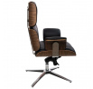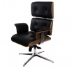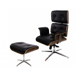 Rendkívül kényelmes VIP Exclusive Home Fotel ideális kiegészítője a stílusos irodának vagy nappalinak. Az ideálisan formázott ülés fekete természetes bőrből készült, és ugyanolyan anyaggal bevont gombokkal végződő varrással rendelkezik. A szék hátsó és alsó része formázott rétegelt lemezből készült, amely a széknek átlagon felüli formát kölcsönöz. A kényelmes kiegészítők közé tartoznak a 18 cm magasságban lévő kartámaszok az ülőfelülettől. A szék ülőkéje egy 5 lábú krómozott fém alapon helyezkedik el. A szék állítható magassággal és dőlésszöggel rendelkezik. A szék tökéletesen illeszkedik az ugyanabból a sorozatból származó lábtartóhoz. A lábtartó ideálisan formázott ülőkéje fekete bőrből készült, varrással és ugyanolyan anyaggal bevont gombokkal. Az ülőke alsó része formázott rétegelt lemezből készült, amely elegáns formát kölcsönöz a lábtartónak. A lábtartó egy 4 lábú krómozott fém alapra lett helyezve. A szék maximális terhelhetősége 120 kg, a lábtartó maximális terhelhetősége: 120 kg Magasság: 108/115