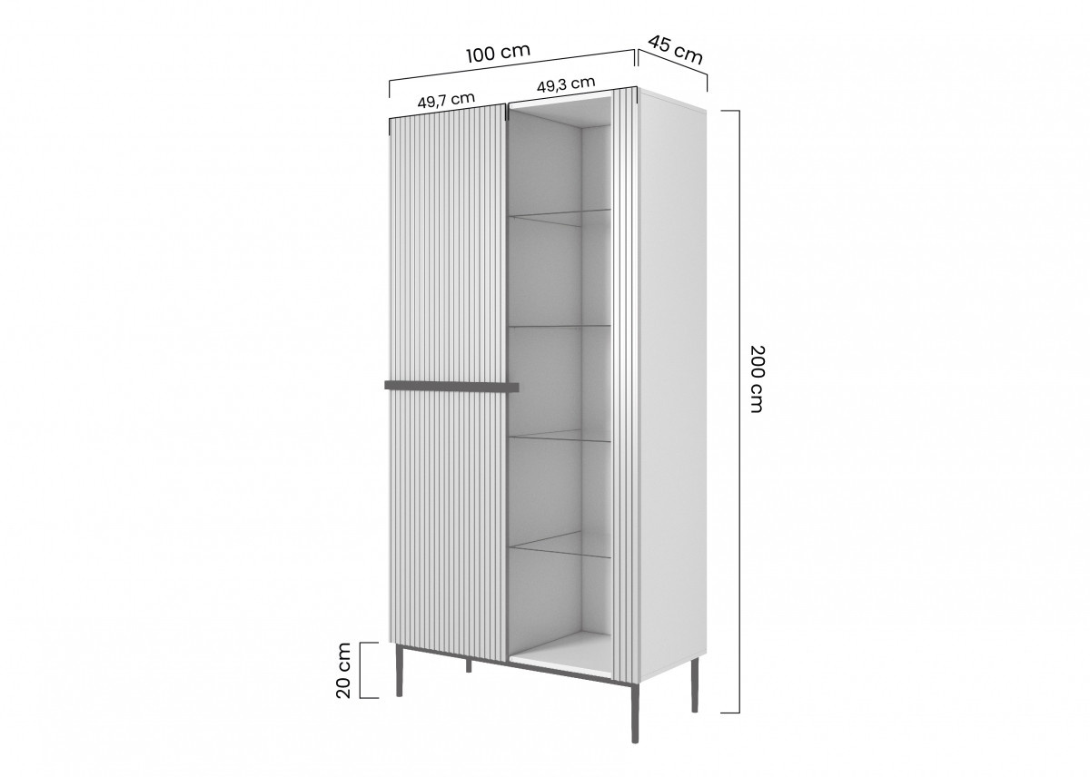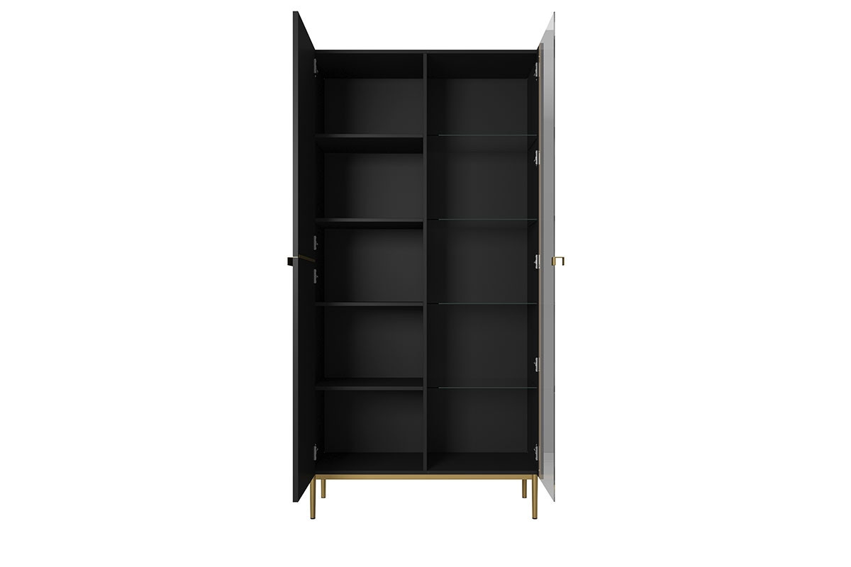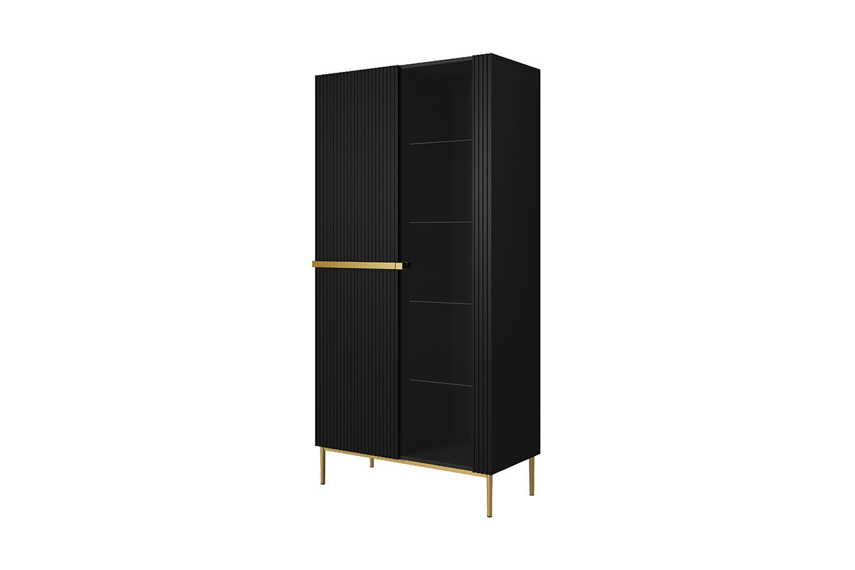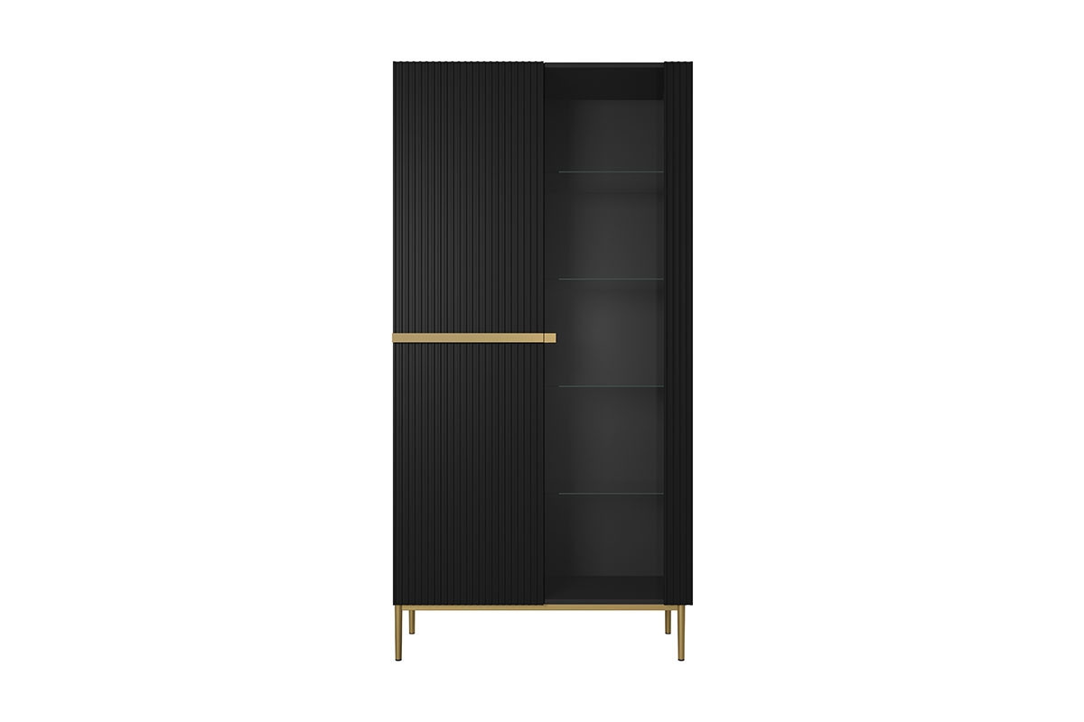 Vitrína Nicole - černý mat / zlaté nožky, Šířka: 100, Výška: 200, Hloubka: 45, Výška nožek: 20