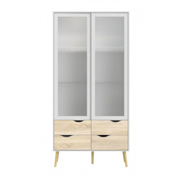 Pokud máte rádi Retro styl, pak je tato kolekce nábytku stvořena pro Vás. Nábytek je zhotoven z lamina o tl. 15 mm, které je odolné a snadné na údržbu. Díky rozmanitosti nabízených prvků, které kolekce Retro nabízí, si můžete sestavit obývací pokoj, jídelnu, ložnici, kancelář, nebo předsíň. Vitína nabízí dostatek úložného prostoru a je vybavena praktickými zásuvkami na drobnosti. Retro vzhled zdůrazňují vysoké šikmé nožky a obloukové výřezy místo úchytek. Vitrínu nabízíme ve dvou barevných provedeních. Je dodávaná v demontu a součástí je montážní plánek včetně všech potřebných spojovacích materiálů. Vyobrazené dekorace nejsou v ceně. Nábytek je dodáván z Dánska, proto doporučujeme ověřit dostupnost zboží.