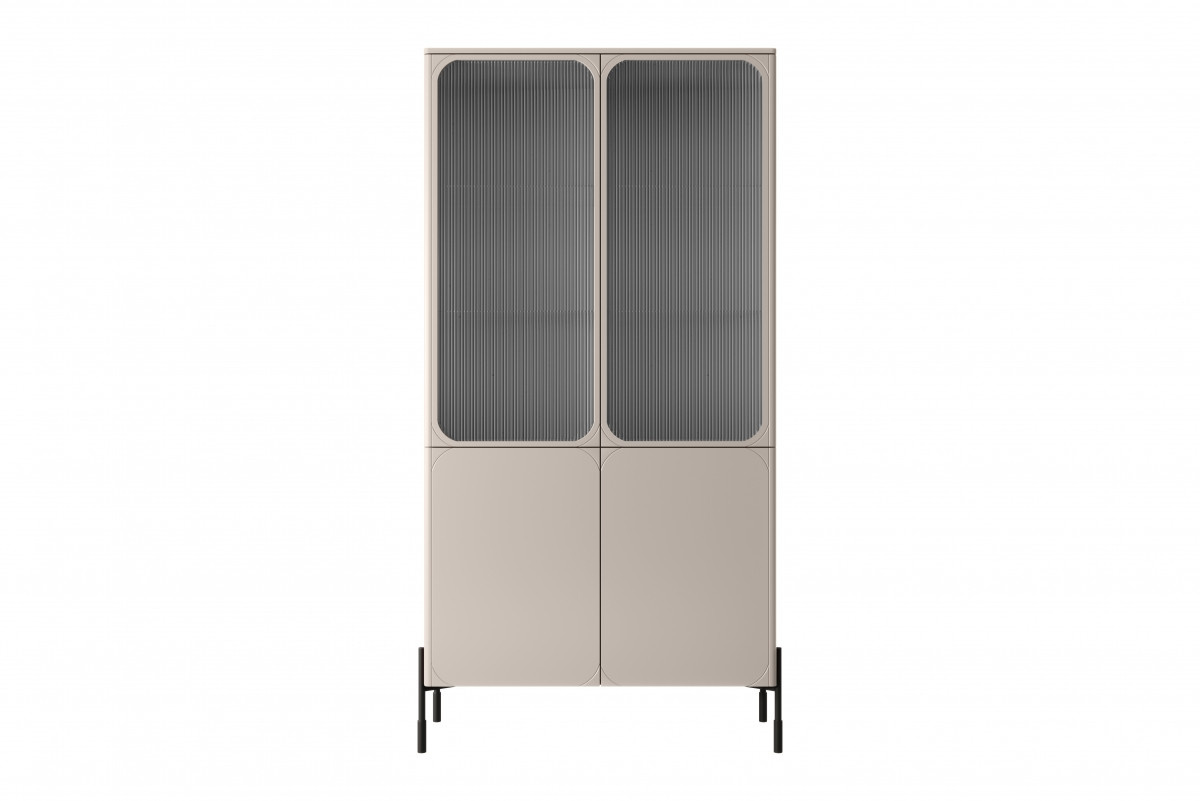 Vitrína Sonatia 100 cm - kašmír , šířka: 104, výška: 200, hloubka: 45, výška nohou: 20, montáž: