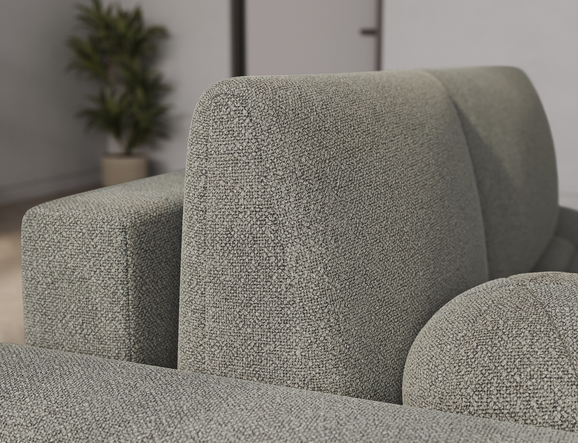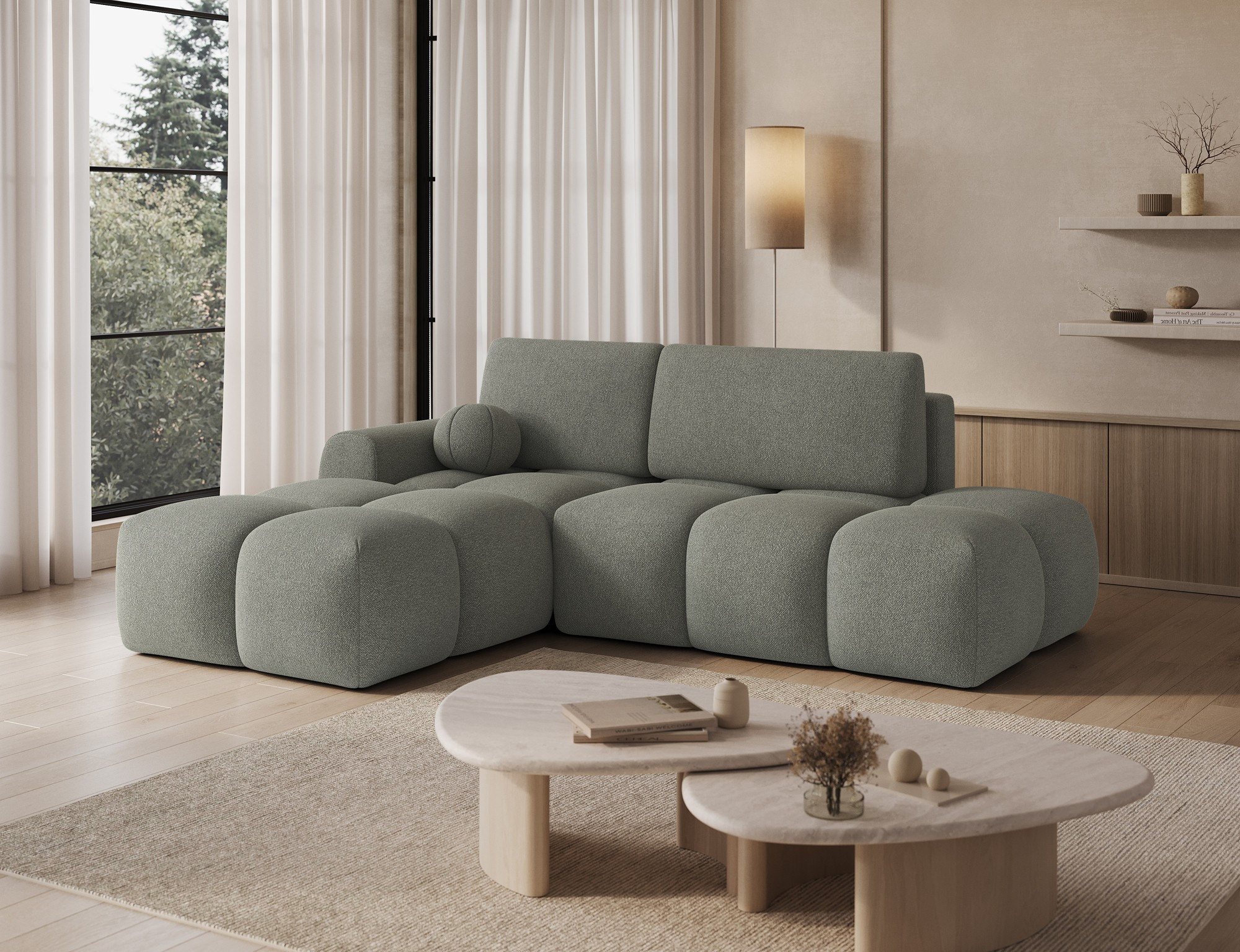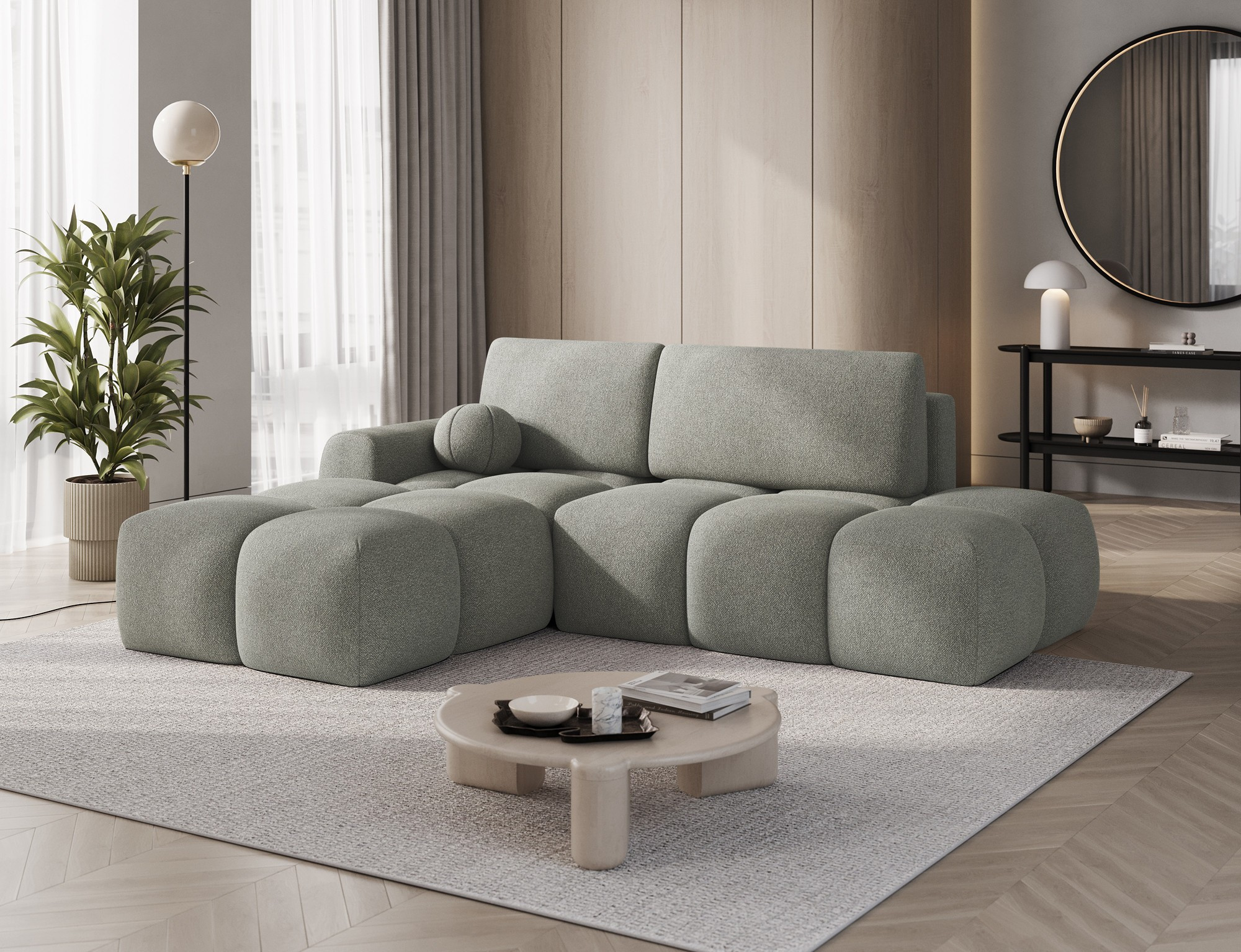 The Vittario corner sofa is a modern and functional piece of furniture designed for maximum comfort. Its cubic shape and soft lines blend perfectly with contemporary interior designs. The piece measures 227 × 170 × 95 cm and weighs 115.4 kg, ensuring stability and long-lasting durability. The seat is filled with a Type B wave spring, HR3030 foam, and T2315 foam. The backrest consists of cushions filled with foam granulate, which adapt to the body and provide soft, relaxing comfort. The sofa is equipped with a sleeping function offering a surface of 95 × 205 cm, as well as a DL mechanism with a spring that supports easy and quick unfolding. An additional advantage is the bedding storage, which helps keep the living room tidy. Vittario is a combination of practicality, aesthetics, and comfort, perfect for modern spaces.