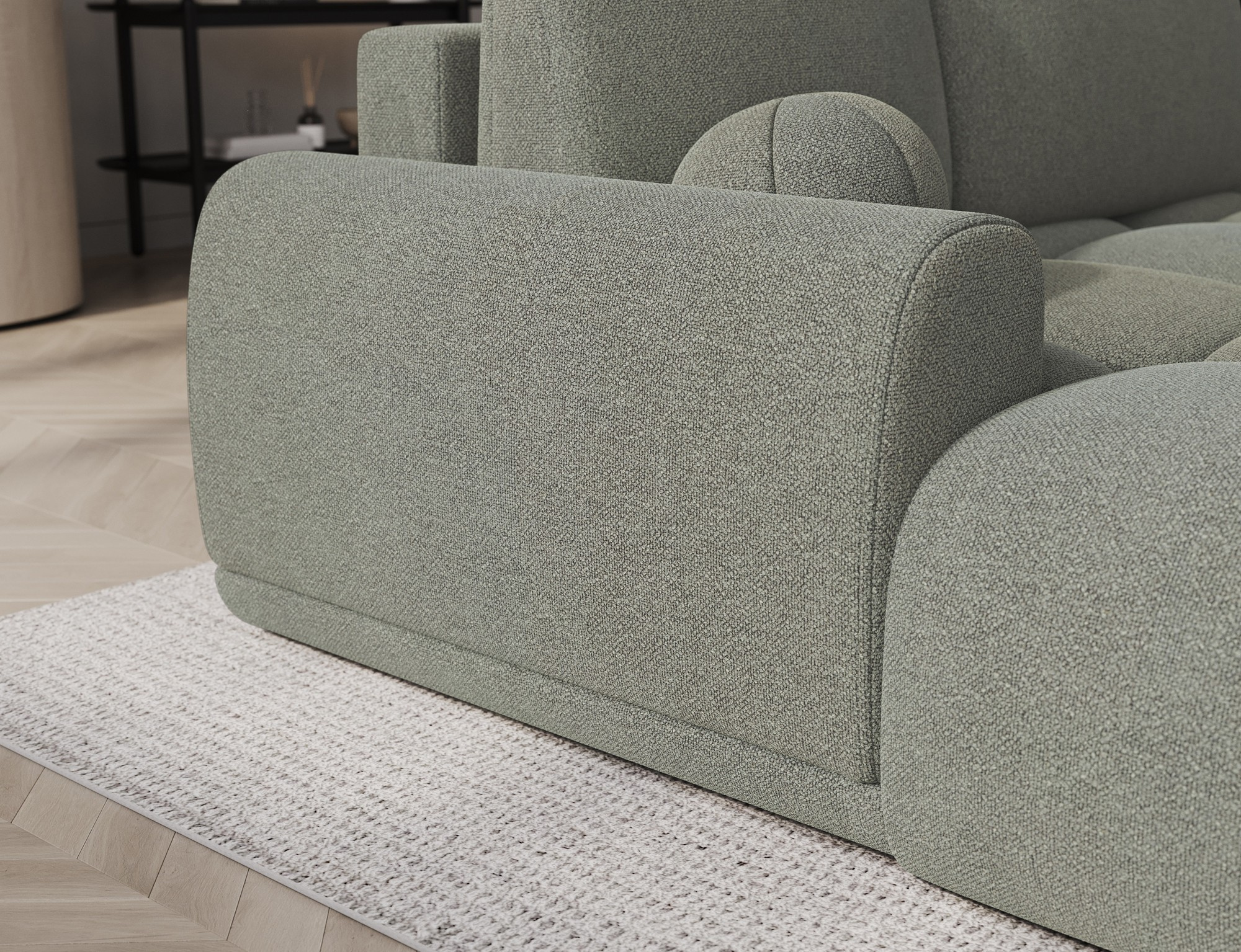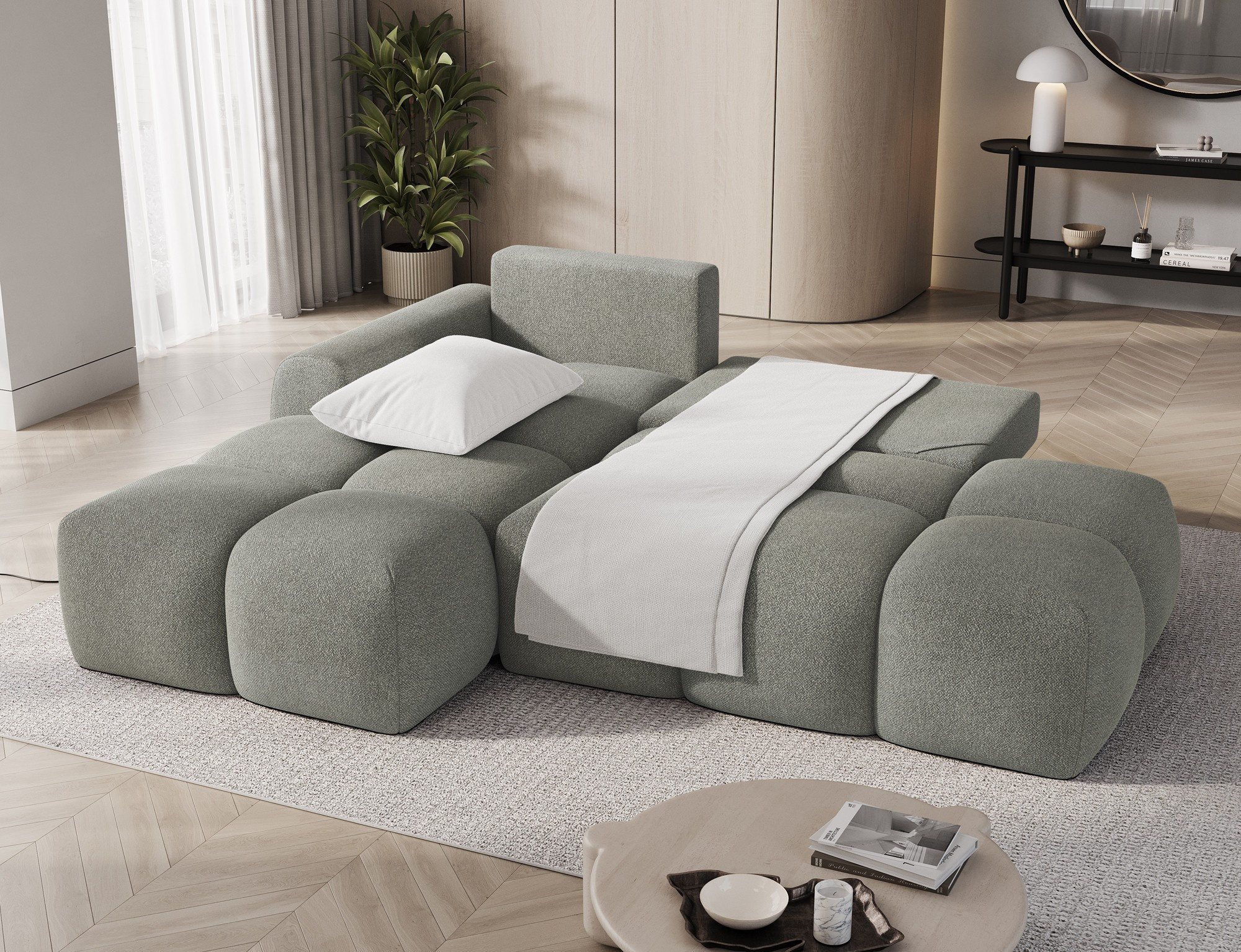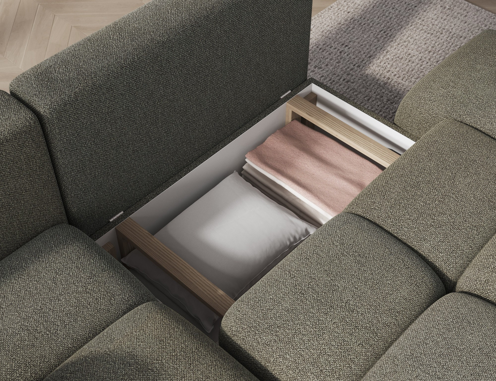 The Vittario corner sofa is a modern and functional piece of furniture designed for maximum comfort. Its cubic shape and soft lines blend perfectly with contemporary interior designs. The piece measures 227 × 170 × 95 cm and weighs 115.4 kg, ensuring stability and long-lasting durability. The seat is filled with a Type B wave spring, HR3030 foam, and T2315 foam. The backrest consists of cushions filled with foam granulate, which adapt to the body and provide soft, relaxing comfort. The sofa is equipped with a sleeping function offering a surface of 95 × 205 cm, as well as a DL mechanism with a spring that supports easy and quick unfolding. An additional advantage is the bedding storage, which helps keep the living room tidy. Vittario is a combination of practicality, aesthetics, and comfort, perfect for modern spaces.