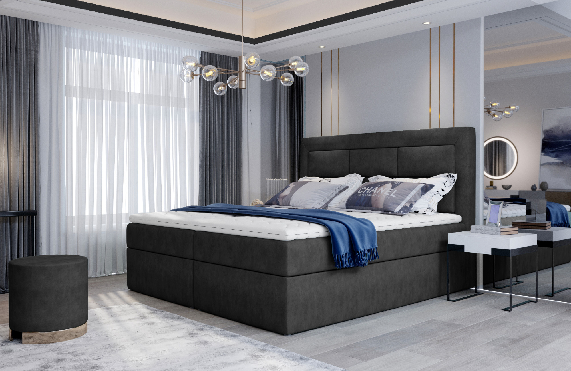 Vivre is a simple and spacious, yet elegant and very comfortable boxspring continental bed that will be the perfect finishing touch to any modern bedroom design. This model, available in a choice of three sizes: 140/160/180 x 200 cm, is equipped with a firm bonell mattress and T25 foam. In addition, it is also worth taking a look at the two spacious bedding containers. Additional distinctive elements for the Vivre bed include: a fashionable stitched headrest, a high 53 centimeter seat, as well as small legs. If you are interested in a comfortable, as well as stylish bed from which you get up with only your right foot, because of the maximum comfort and functionality it offers - we invite you to be interested in our Boxspring Vivre. After all, healthy sleep is the most important thing.