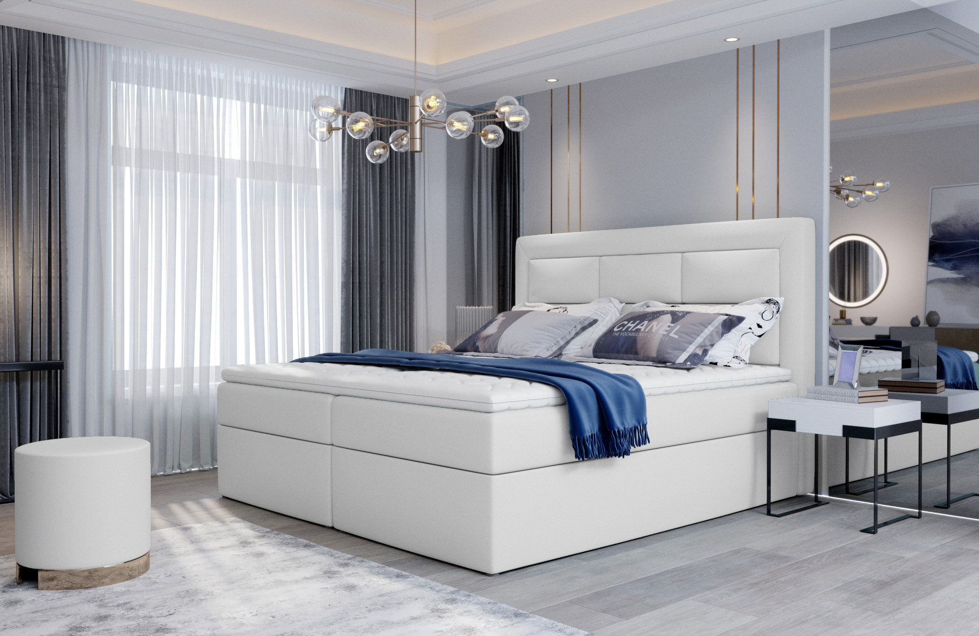 Vivre is a simple and spacious, yet elegant and very comfortable boxspring continental bed that will be the perfect finishing touch to any modern bedroom design. This model, available in a choice of three sizes: 140/160/180 x 200 cm, is equipped with a firm bonell mattress and T25 foam. In addition, it is also worth taking a look at the two spacious bedding containers. Additional distinctive elements for the Vivre bed include: a fashionable stitched headrest, a high 53 centimeter seat, as well as small legs. If you are interested in a comfortable, as well as stylish bed from which you get up with only your right foot, because of the maximum comfort and functionality it offers - we invite you to be interested in our Boxspring Vivre. After all, healthy sleep is the most important thing.