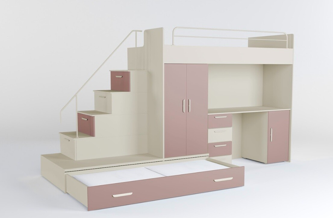 Vytvořte svému dítěti útulný a praktický prostor s naší multifunkční postelí, která nabízí nejen pohodlí, ale také dostatek úložného prostoru a pracovní plochu pro každodenní aktivity.