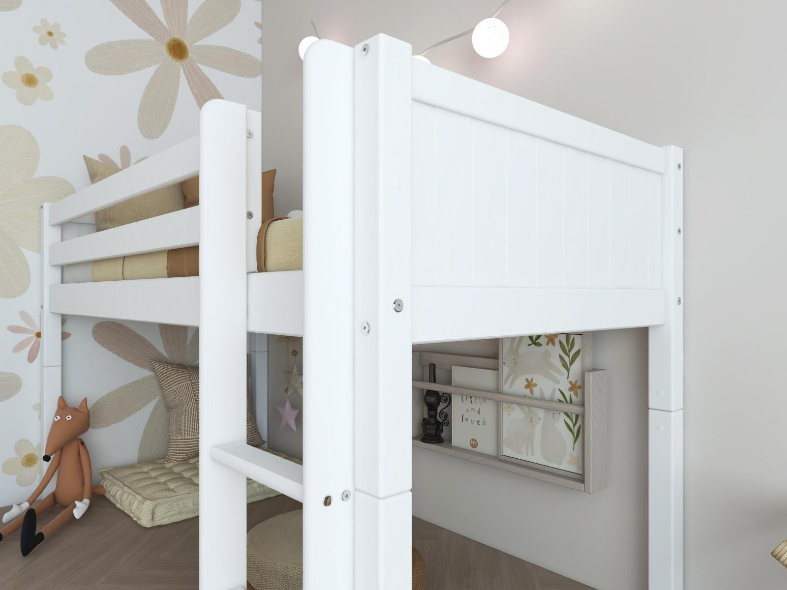 Vyvýšená postel Romantic poskytne úžasný prostor pro zábavu a hraní pod postelí – nebo pro uložení všech hraček, které vaše děti mají. Je také maximálně flexibilní - později může být rozložena na klasickou postel.