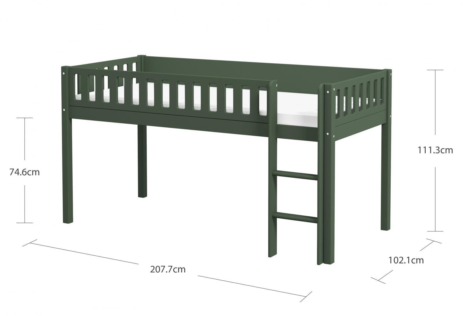 Vyvýšená postel Viggo je dokonalou volbou pro děti, které rády šplhají po žebříku. Praktický a útulný prostor pod postelí vytvoří skvělé místo pro hraní nebo uložení všech nezbytností.