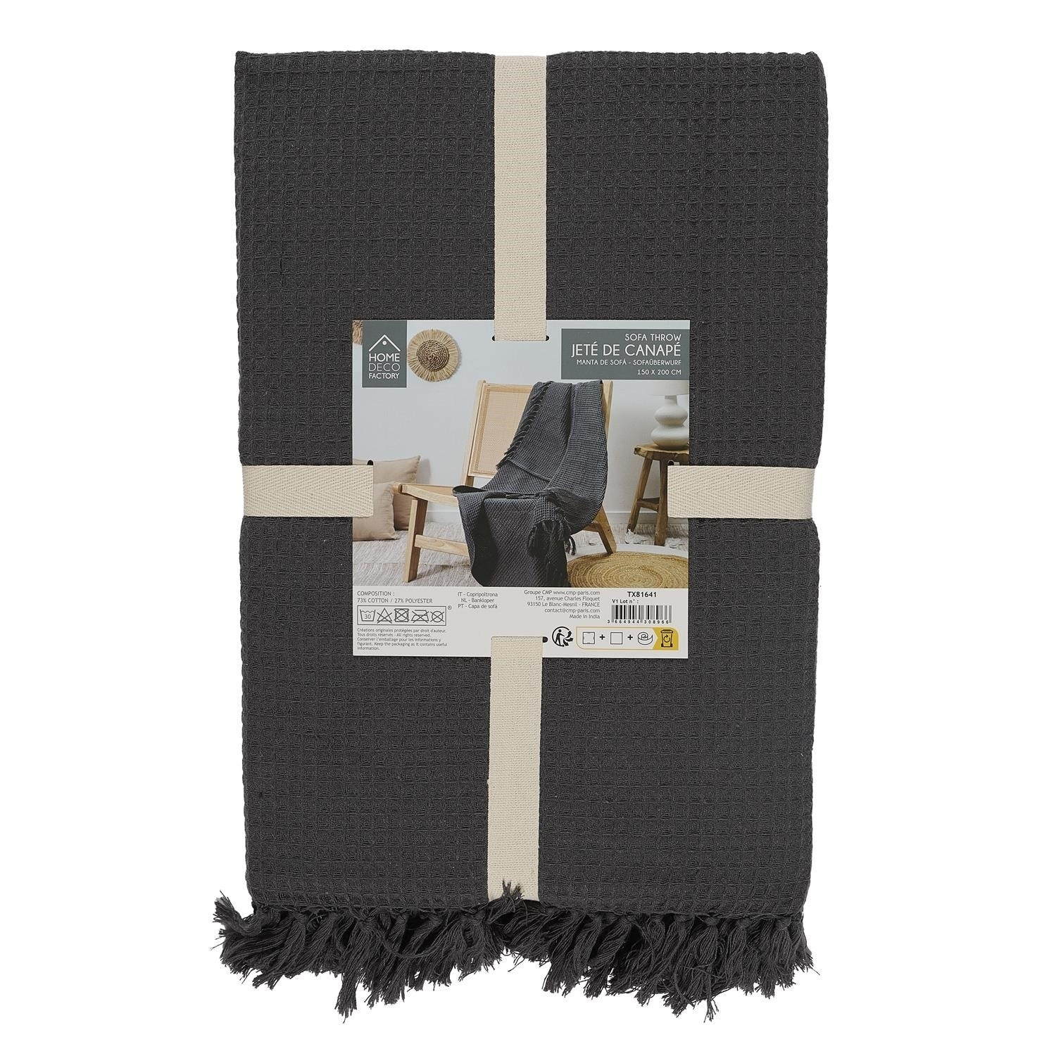 Waffle ágytakaró/pléd antracit 150x200cm