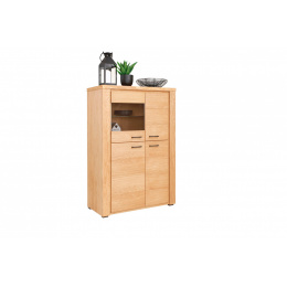 Komody, szafy, mniejsze szafki i duże witryny. Specjalnie dla Naszych klientów przygotowaliśmy rozbudowany katalog mebli do salonu, z których każdy element z kolekcji Natura cechuje się wysoką jakością wykonania i atrakcyjnym, niepowtarzalnym designem. \n \n \n \nSpecyfikacja: \n \n- Nóżki plastikowe - czarne, \n- Naturalna okleina dębowa - olejowana, \n- W szufladach ciche domyki, \n- Uchwyty metalowe - czarne. \n \n* meble wykonywane pod indywidualne zamówienie - termin realizacji zamówienia od 3 do 6 tygodni