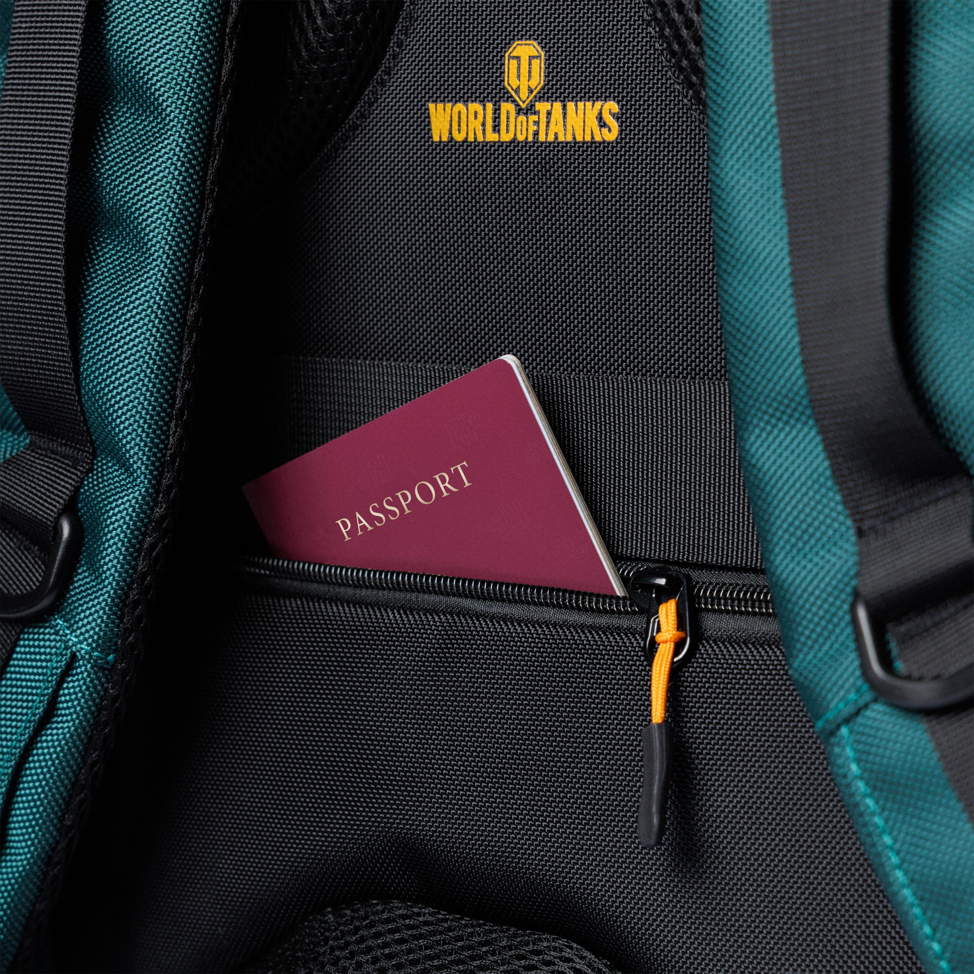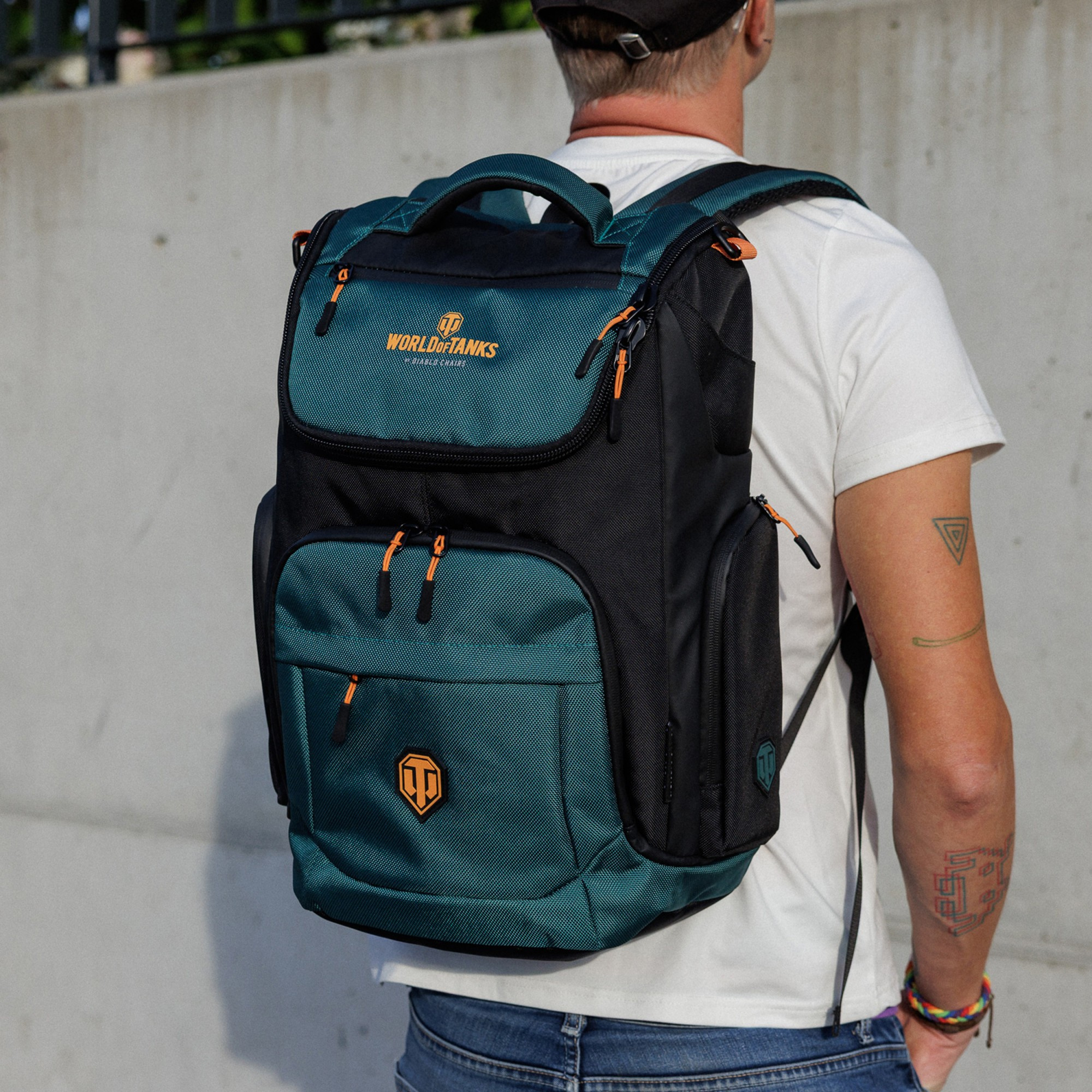 A WoT hátizsák egyedi dizájnnal büszkélkedhet, amely a World of Tanks ikonikus zöld-narancssárga színvilágából merít ihletet.