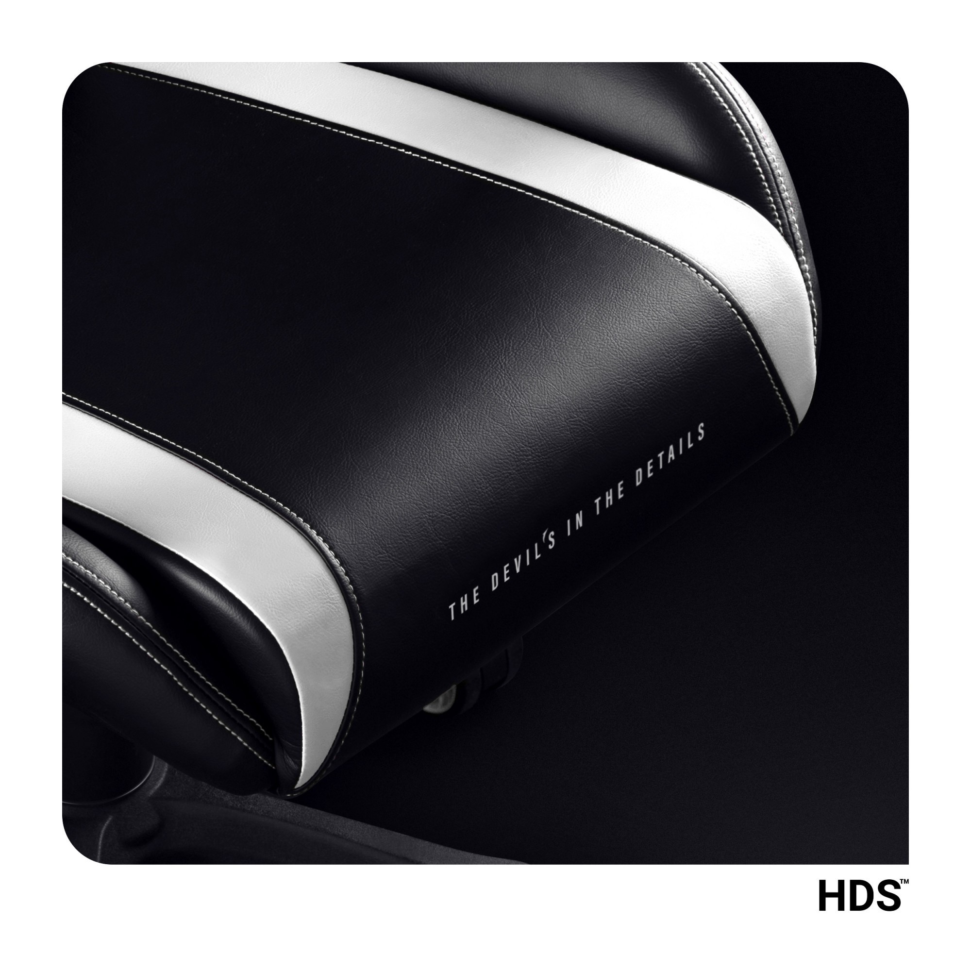 A matt fekete és hófehér szín kombinációja egyedi és provokatív megjelenést kölcsönöz az X-Horn széknek. A szarvak és a hímzett logó kiemelik sötét jellegét, és garantálják, hogy minden szoba vagy iroda központi elemévé válik.