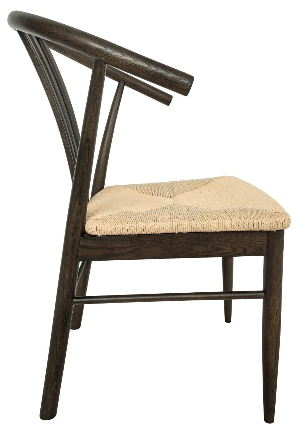 A York karosszékes étkezőszék elegáns bútordarab modern dizájnnal, amely ötvözi a fehér papírfonást a természetes fával. A háttámla és az ülés kötött anyagból készültek, ami könnyed, kézműves jelleget kölcsönöz a széknek. A szék szerkezete matt tölgyből készült, füstös árnyalatúra (NC) lakkozott szilárd alapra épül, ami meleg és otthonos megjelenést kölcsönöz neki. A kartámaszok és az ívelt háttámla nemcsak kényelmet biztosítanak, hanem elegáns, borítékszerű mintát is, amely finom, de modern elemet hoz a belső térbe. Maximális teherbírás 110 kg Magasság: 83 cm Szélesség: 54 cm Hosszúság: 54 cm