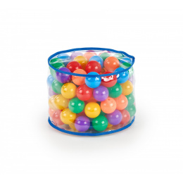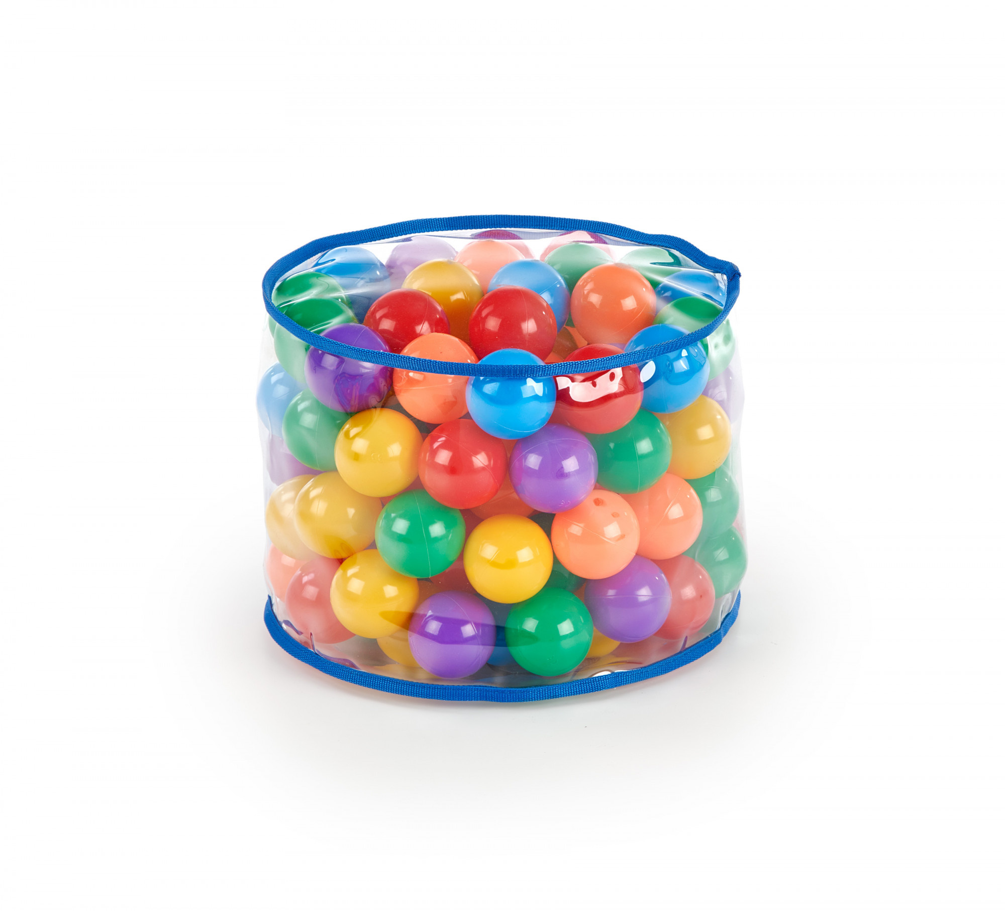 méretek: fi39/42 cm, anyag: tanúsított, nem mérgező, szagtalan műanyag, szín: golyók - többszínű, huzat - színtelen kék szalagokkal