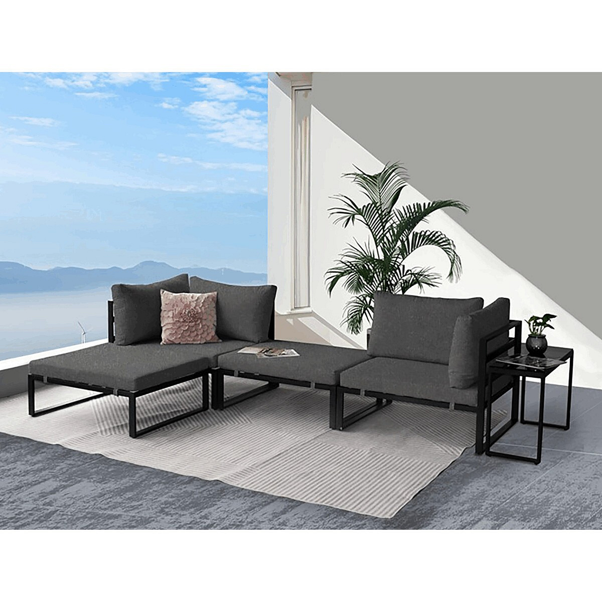 Moderní zahradní sestava značky Autronic je dokonalým řešením pro váš venkovní prostor. Sestava je multifunkční a umožňuje variabilní uspořádání podle vašich potřeb. Pevná kovová konstrukce s práškovou povrchovou úpravou v antracitové barvě je doplněna pohodlnými tmavě šedými látkovými sedáky, které jsou pevně připevněny ke konstrukci pro maximální stabilitu. Deska stolku z tvrzeného skla dodává sestavě elegantní vzhled, zatímco moderní design zaručuje stylový doplněk do vaší zahrady nebo na terasu.