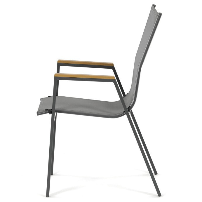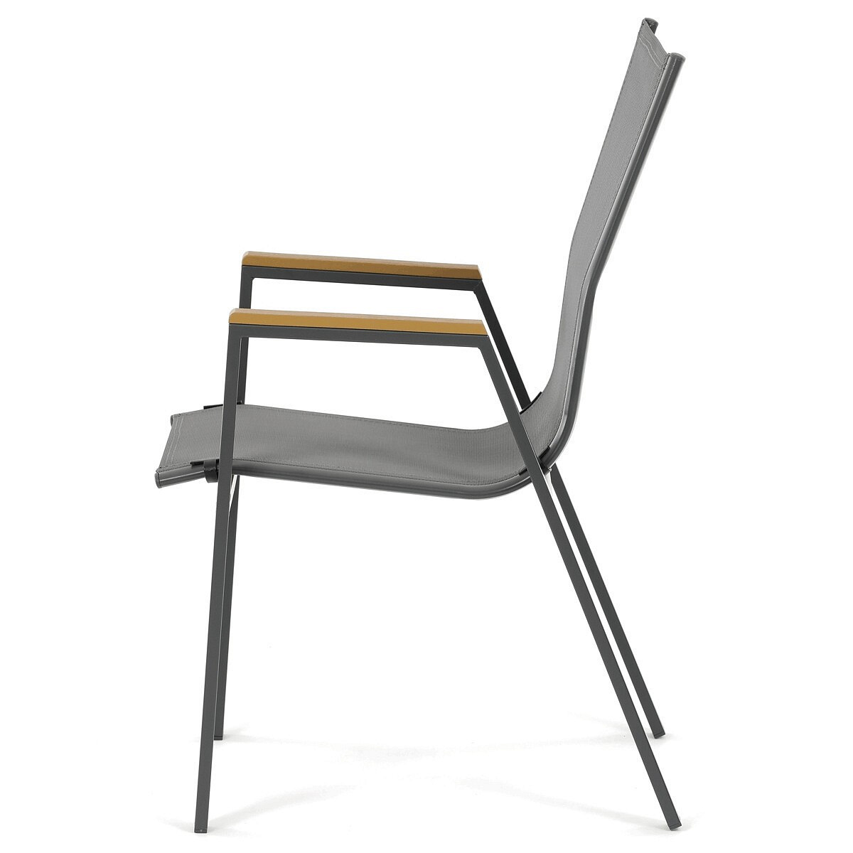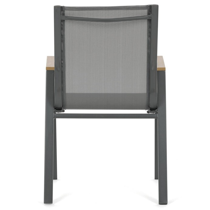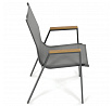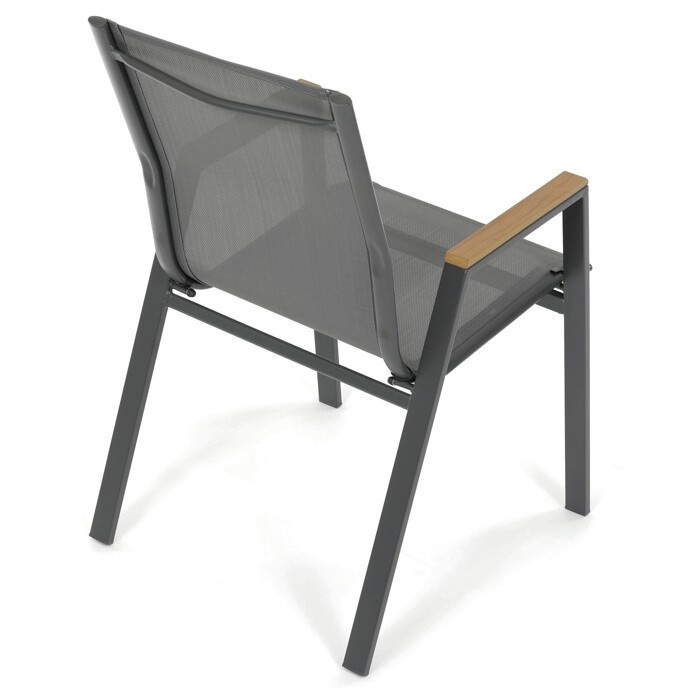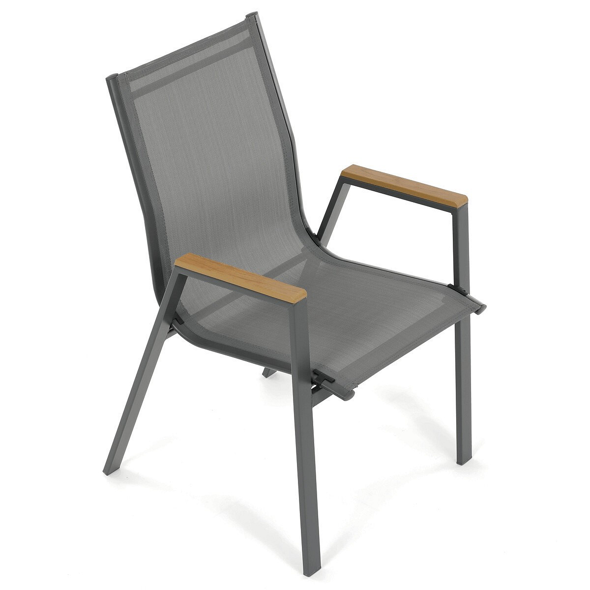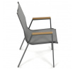 Moderní zahradní židle značky Autronic v elegantní šedé barvě představuje ideální volbu pro stylové venkovní posezení. Sedák i opěrák z kvalitního textilu zaručuje pohodlí a snadnou údržbu. Pevná kovová konstrukce s práškovou povrchovou úpravou zaručuje odolnost vůči vnějším vlivům. Polywoodové područky dodávají přírodní akcent, který krásně kontrastuje s minimalistickým designem. Bez nutnosti montáže je židle ihned připravena k použití, což oceníte při rychlém zařizování venkovního prostoru. Skvěle se hodí k venkovním stolům na terase nebo zahradě.