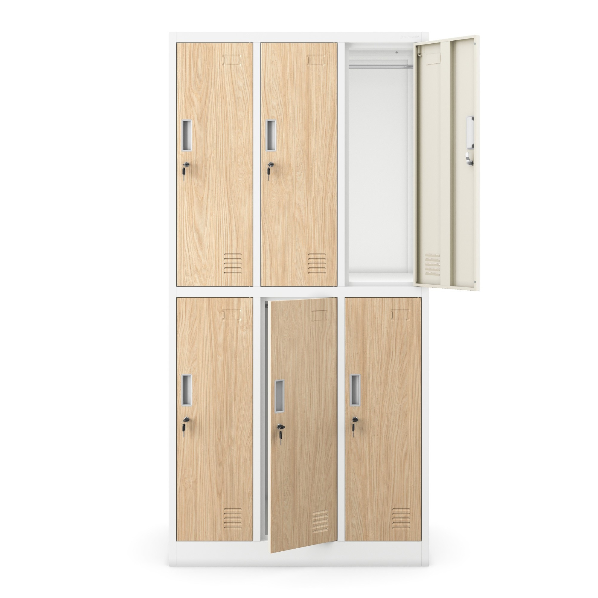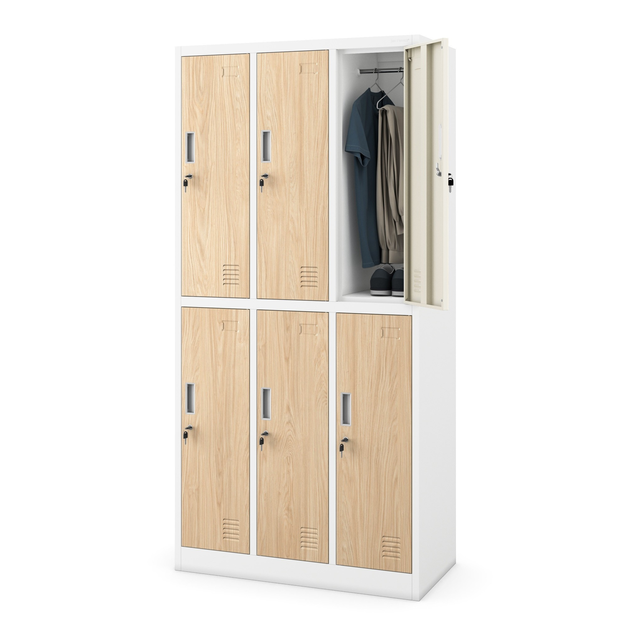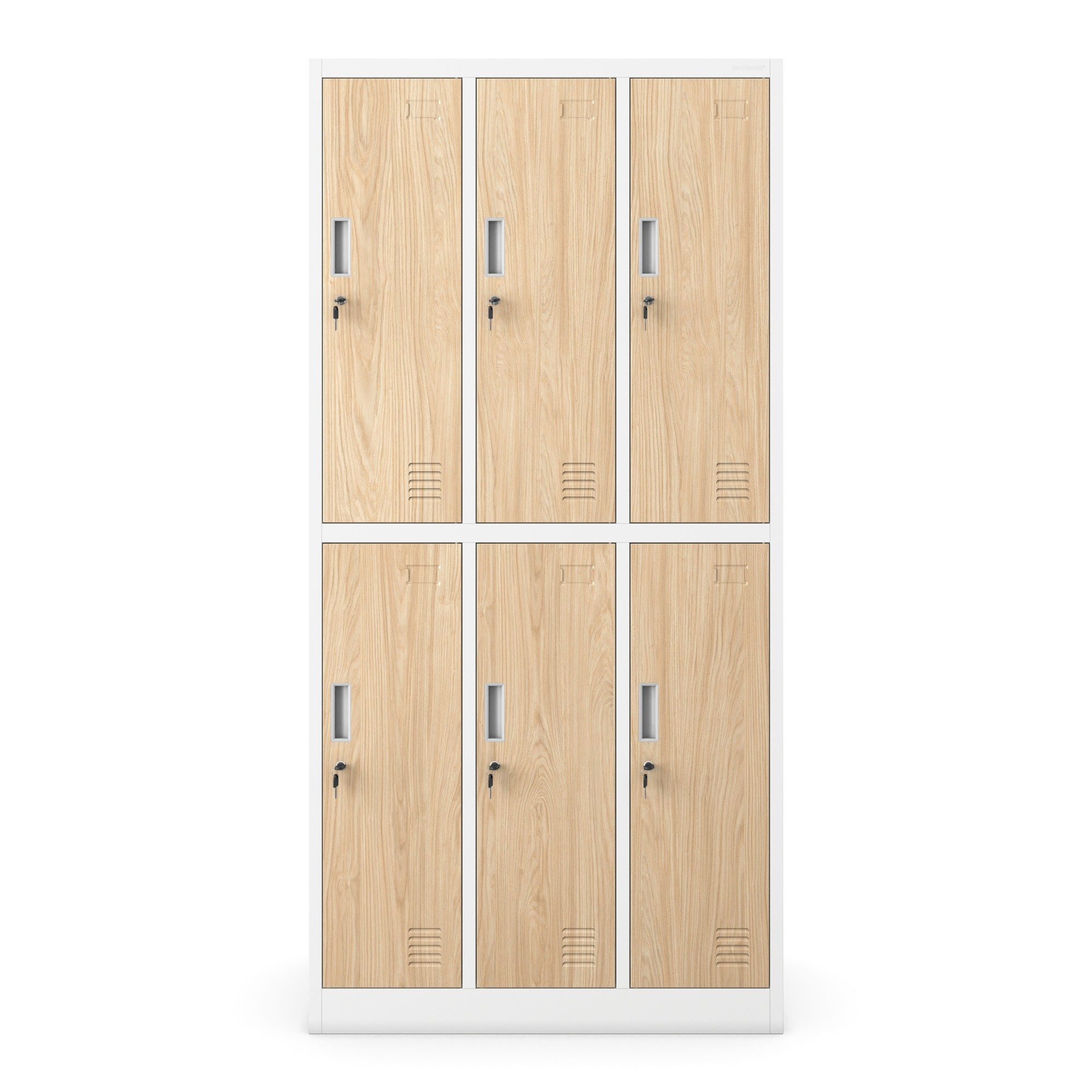 Zárható fém öltözőszekrény 6 rekesszel IGOR, 900 x 1850 x 450 mm, Eco Design: fehér/ sonoma tölgy