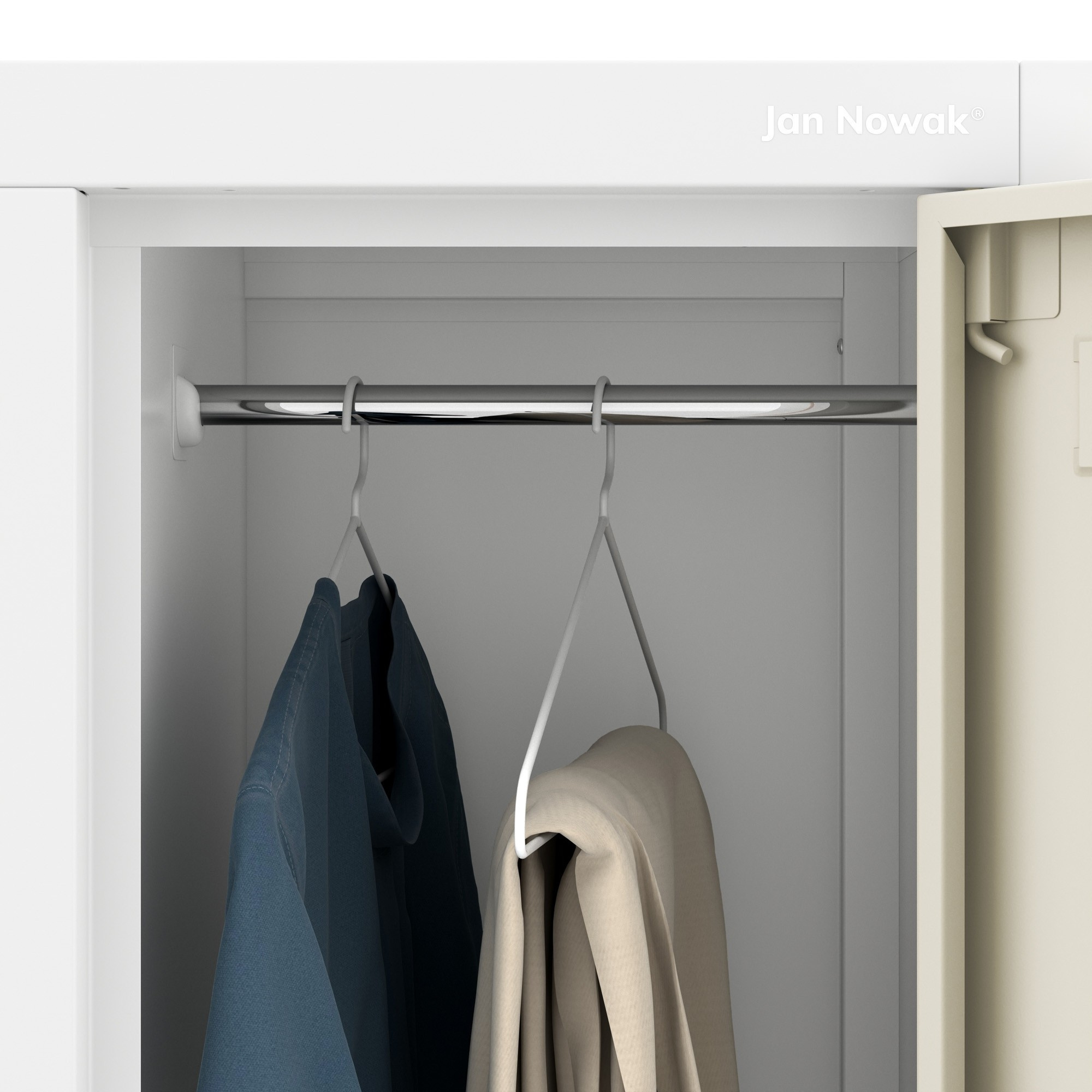 Az IGOR szekrény 0,6 mm vastag minőségi acélból készült, ami garantálja a magas ellenállóságot és a hosszú élettartamot. A porszórás megvédi a szekrényt a korróziótól és a mechanikai sérülésektől, így megőrzi megjelenését még évek használata után is. A szilárd szerkezet biztosítja a szekrény stabilitását még teljes terhelés esetén is.