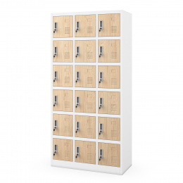 A közösségi öltözőszekrény elengedhetetlen minden öltözőben. A KAROL modell az Eco Design kollekcióból lehetővé teszi a tér maximális kihasználását és a ruhák, cipők és személyes tárgyak kényelmes tárolását. A kompakt méreteknek és a 18 különálló rekesznek köszönhetően lehetővé teszi a rendelkezésre álló hely maximális kihasználását. A KAROL modell kiválóan alkalmas munkahelyi, iskolai, edzőtermi vagy uszodai öltözőkbe.