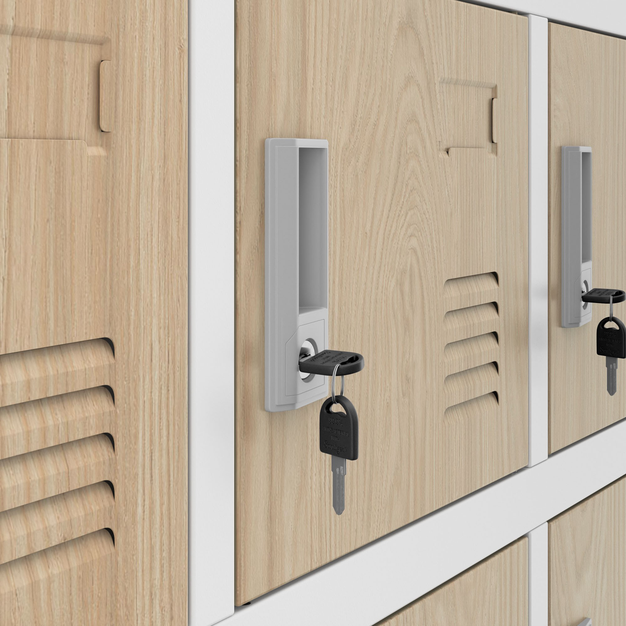 Minden rekesz erős kulcsos zárral van felszerelve, amely garantálja a tárolt tárgyak biztonságát.