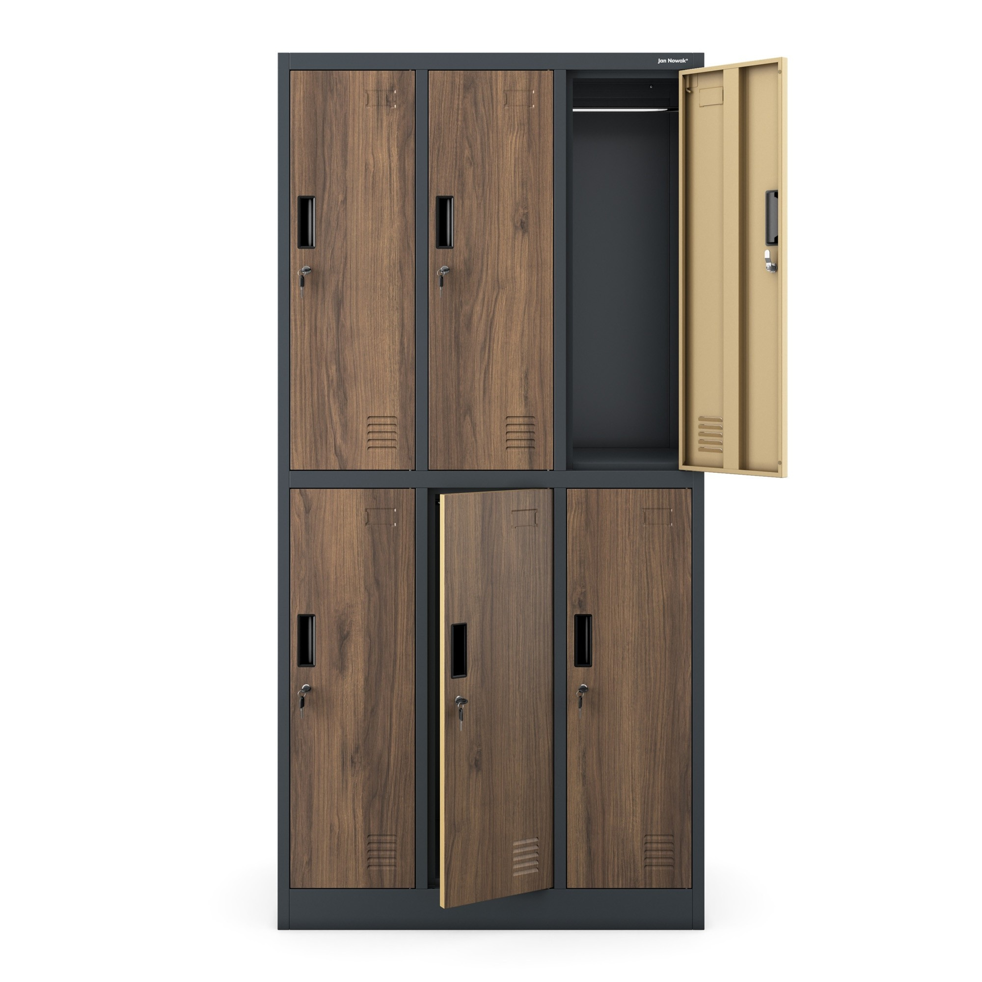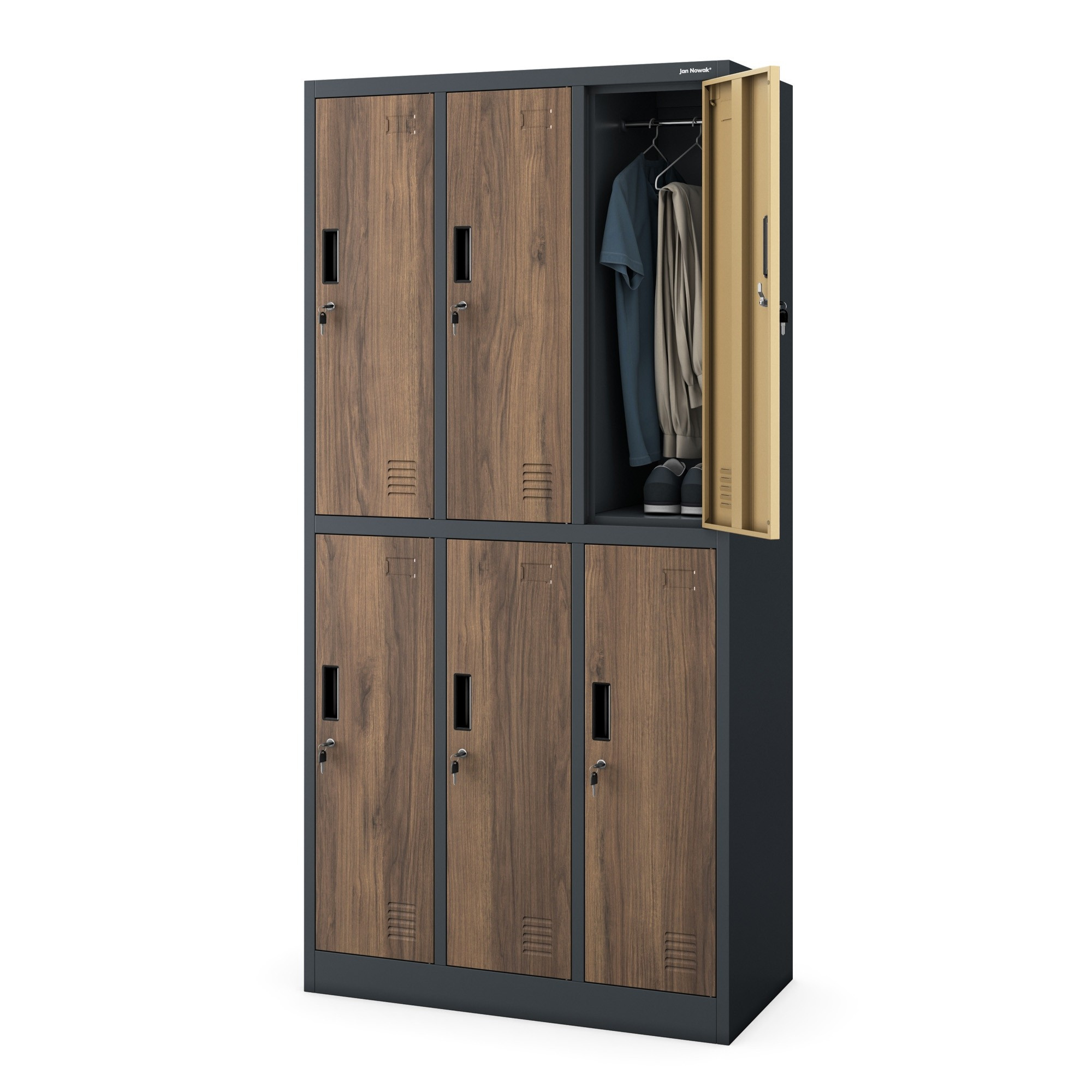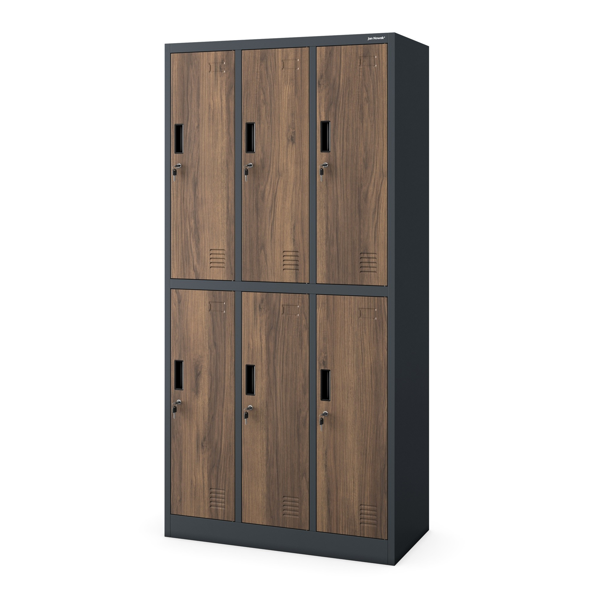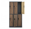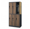 Zárható fémszekrény 6 rekesszel IGOR, 900 x 1850 x 450 mm, Eco Design: antracit/dió