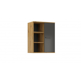 Závěsná skříňka Roky 3 Grafit je vyrobena z lamina v krásném dekoru grafit a dub artisan. Lamino tloušťky 18 mm je odolné a je zakončeno lištou ABS. Jistě oceníte i snadnou údržbu. Skříňka má nastavitelné panty a je velmi praktická. Kombinace dvířek a polic pojme vše potřebné. Rukojeť v dekóru dřeva je vyrobena z plastu. Je dodávána v demontu. Součástí balení je montážní návod včetně všech spojovacích prvků.