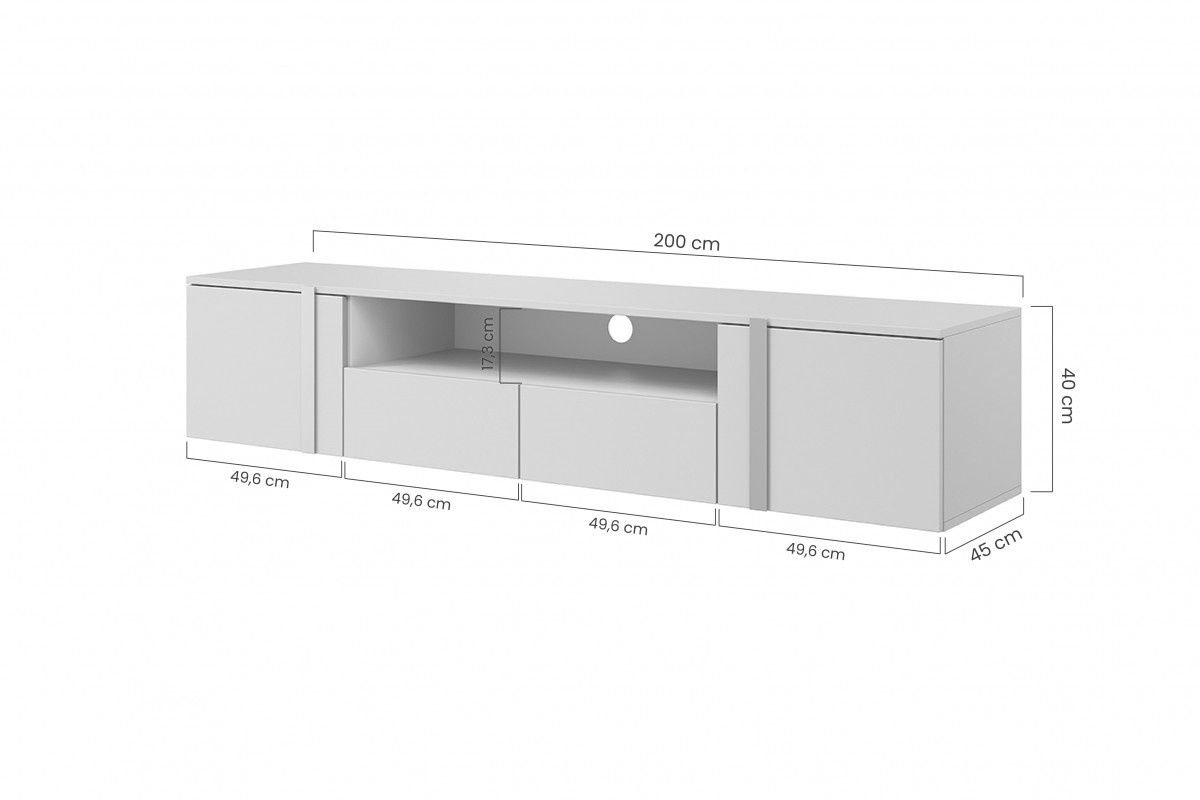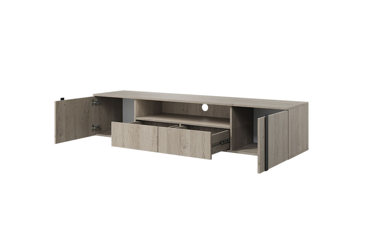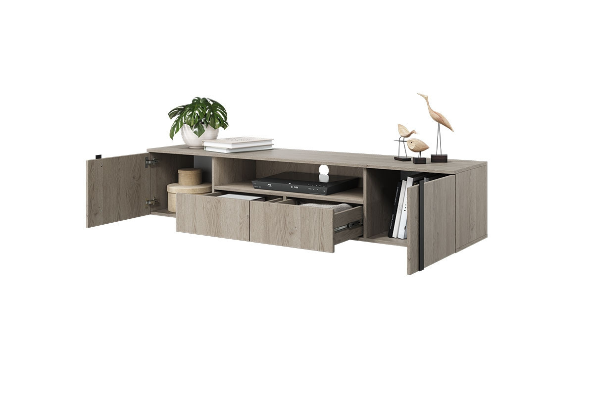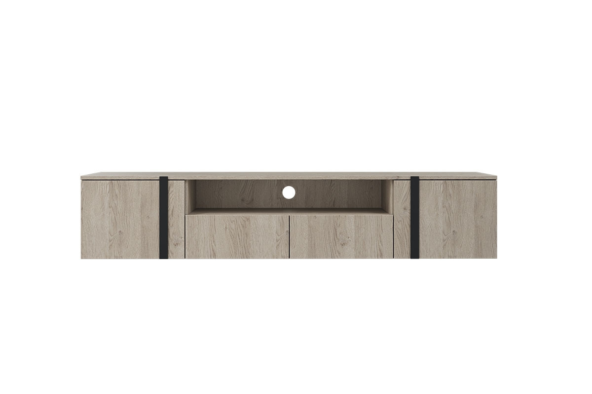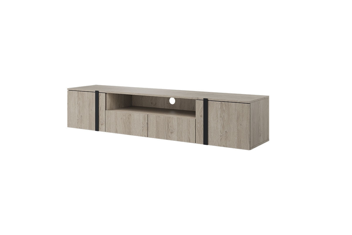 Závěsná TV skříňka Verica 200 cm s výklenkem - dub sušenka / černé úchyty