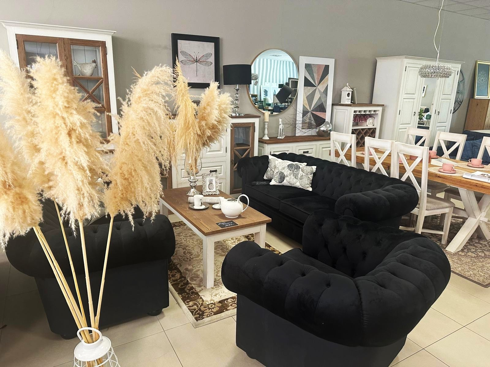 Poprzez klasyczną elegancję Chesterfield doskonale komponuje się zarówno z nowoczesnymi jak i stylowymi meblami. Mebel ten charakteryzuje się pikowaniami dzięki temu jest jedynym z najbardziej rozpoznawalnych kompletów mebli na całym świecie. Idealnie wkomponuje się we wnętrze w stylu Glamour. \n \n \n \nSpecyfikacja: \n \n-Sprężyna bonelowa, \n-Pianka wysokosprężysta HR, \n-Funkcja spania okazjonalnego w kanapie 3-osobowej, \n-Ozdobne pikowania, \n-Drewniane nóżki.