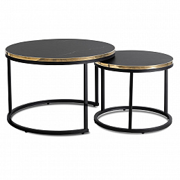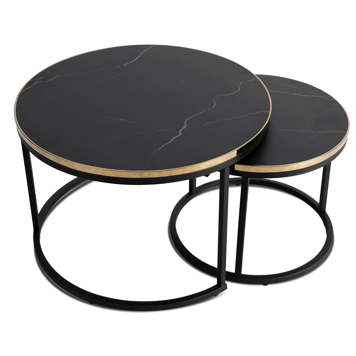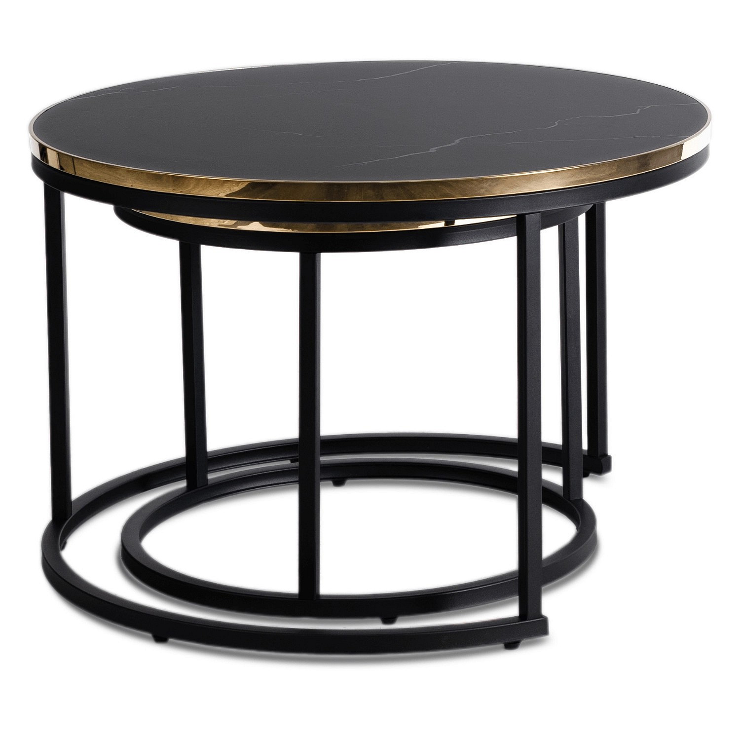 Zestaw Stolików ARON Czarny Marmur/Złoty