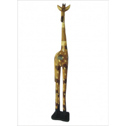 Žirafa je vyřezána ručně z masivního měkkého dřeva, barvena je taktéž ručně, každý kus je tak originál. | Výška sošky je 80 cm.