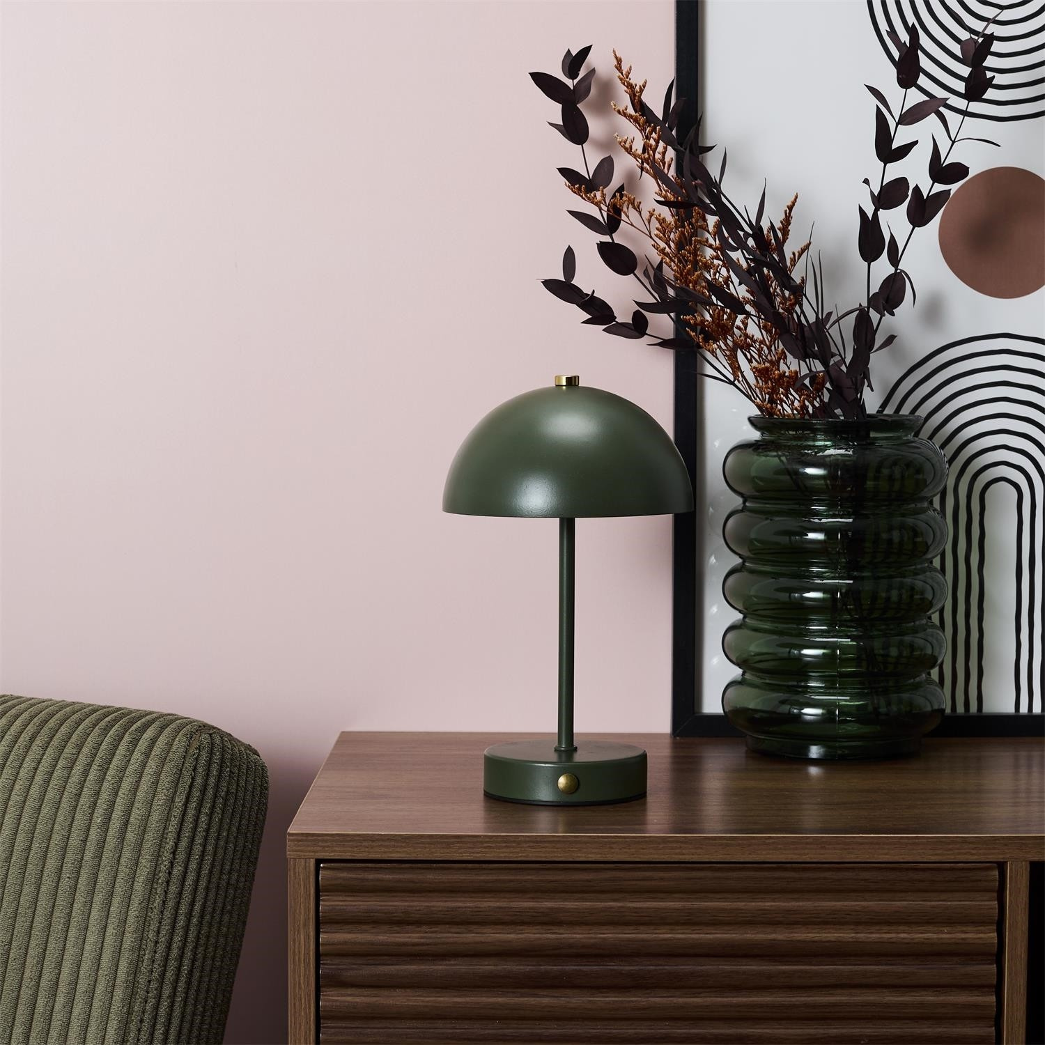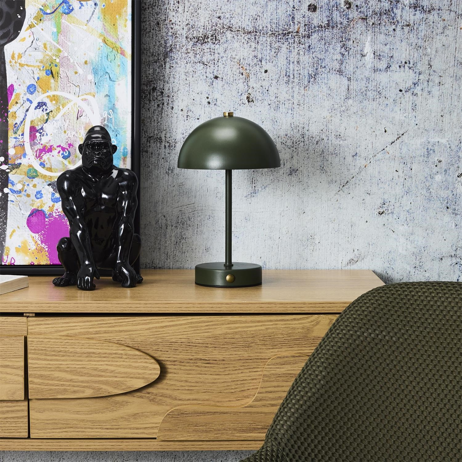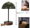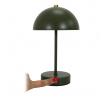 Zöld színű, fémből készült asztali lámpa ideális fényforrás olyan helyekre, ahol nem terveztünk konnektort. A lámpa beépített akkumulátorral rendelkezik, így USB kábellel tölthetjük, és élvezhetjük az energiatakarékos LED izzók folyamatos fényét 4 órán keresztül. A G energiaosztályú lámpa nem cserélhető fényforrással van felszerelve, amely az eszközzel van integrálva. Lámpa 3 fokozatú fényerősséggel, amelyet a talapzatban lévő gombbal kapcsolunk be. A fény színe 3500K