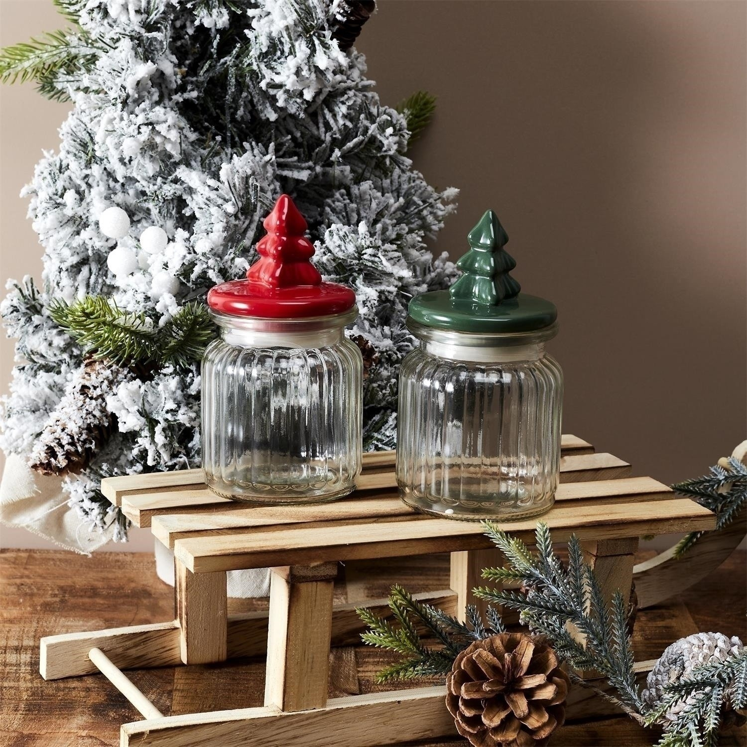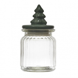 Az üvegedény karácsonyfa alakú fedéllel ideális kiegészítő, amely díszíti otthonunkat karácsony idején. A csúszka jól beválik cukor, kávé vagy dió tárolására. Üvegből készült pohár, míg a fedél kerámiából készült. Az üveg szilikon tömítéssel van ellátva.
